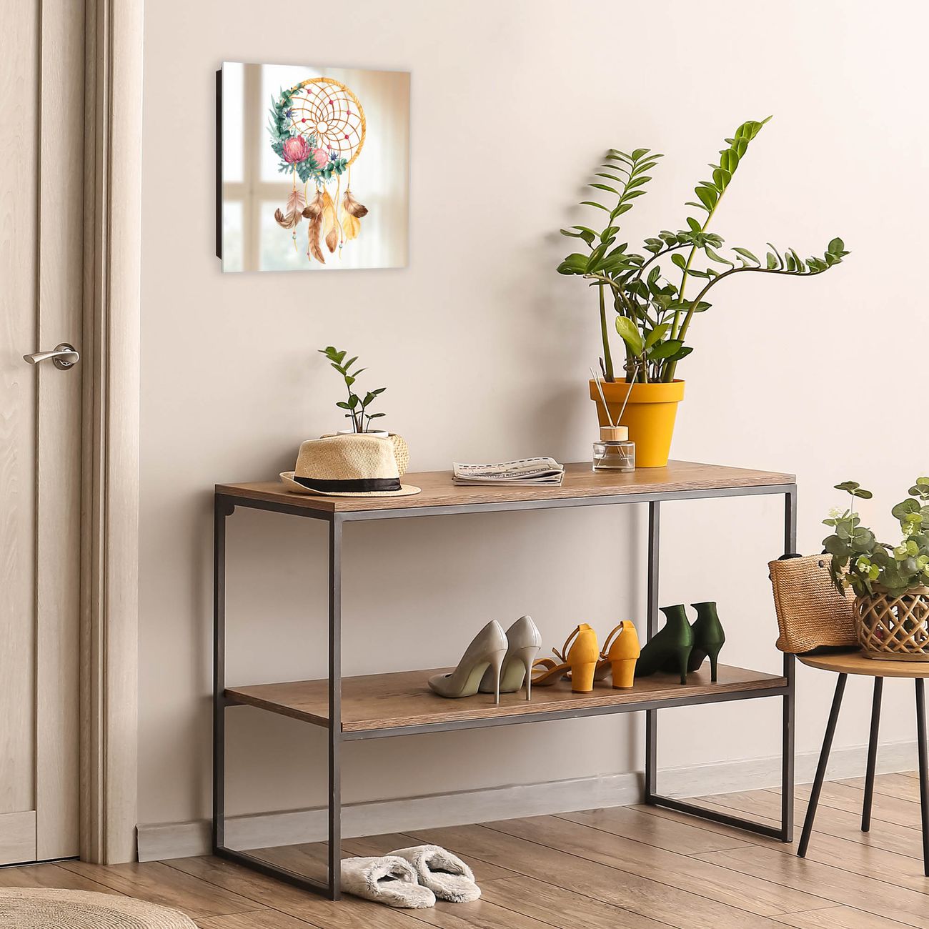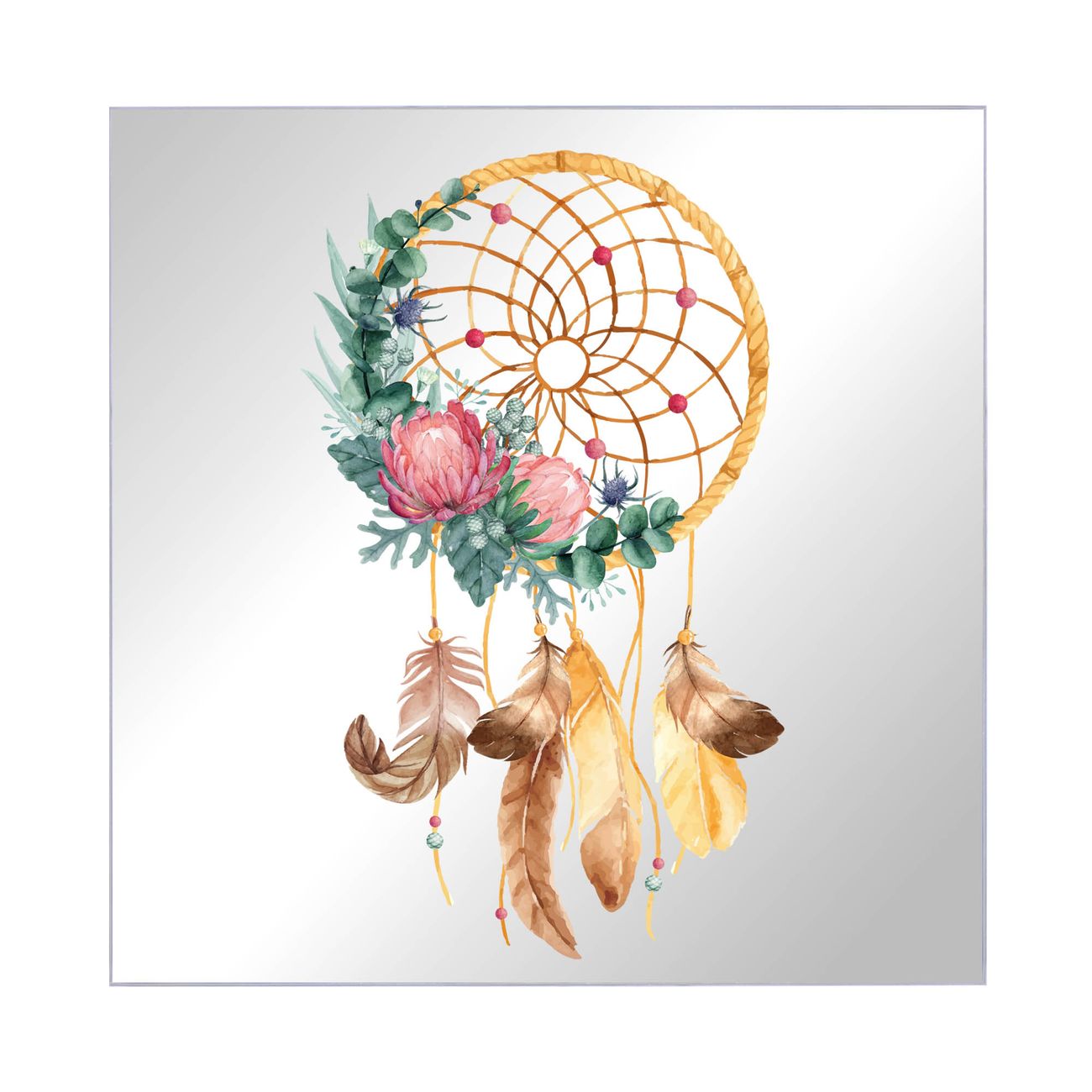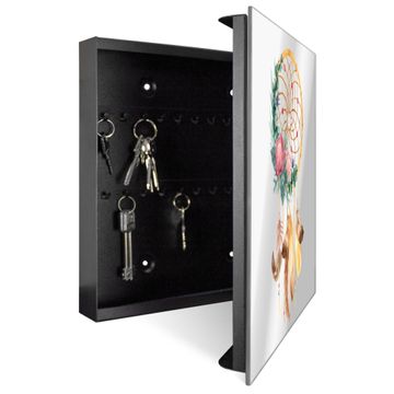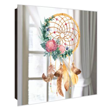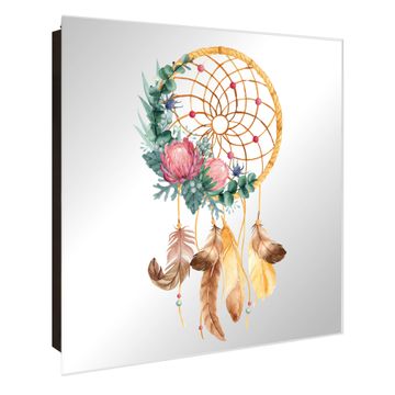 Spiegel Schlüsselkasten - Design Schlüsselbox Motiv Traumfänger Federn und Blumen