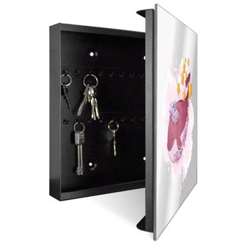 Bringe Ordnung und Stil in deinen Eingangsbereich mit dem banjado Schlüsselkasten mit Spiegel. Die elegante Spiegelfront kombiniert Funktionalität mit modernem Design und macht die Schlüsselaufbewahrung zu einem dekorativen Highlight. ✅ Spiegel Schlüsselaufbewahrung mit Motiv Motiv Traumwal mit Sternen Der Design-Schlüsselkasten Motiv Motiv Traumwal mit Sternen bietet Platz für bis zu 50 Schlüssel, die auf 5 stabilen Reihen mit je 10 Haken übersichtlich verstaut werden. Mit seinen kompakten Maßen von 30 x 30 x 5 cm passt die Schlüsselbox perfekt auch in kleinere Räume. Der schwarz lackierte Stahlkorpus mit rechts angeschlagenem Türscharnier harmoniert mit der Spiegelfront und fügt sich nahtlos in jedes Wohnambiente ein. Ob als Schlüsselorganizer für Zuhause oder als praktische Lösung für Büros, Praxen und Gewerbe, der banjado Schlüsselkasten sorgt für Ordnung und Übersicht. Die Spiegelfront verleiht dem Eingangsbereich zusätzliche Funktionalität und lässt Räume optisch größer wirken. Die Schlüsselbox Motiv Motiv Traumwal mit Sternen zur Wandmontage wird inklusive Befestigungsmaterial geliefert und ist schnell angebracht. So hast du deine Schlüssel jederzeit griffbereit und zugleich stilvoll verstaut. Mit diesem banjado Schlüsselkasten Motiv Motiv Traumwal mit Sternen kombinierst du praktische Aufbewahrung mit stilvollem Wohndesign. Ob privat oder geschäftlich, die Schlüsselbox sorgt für mehr Ordnung, Übersicht und ein wohnliches Ambiente.Vorteile im Überblick