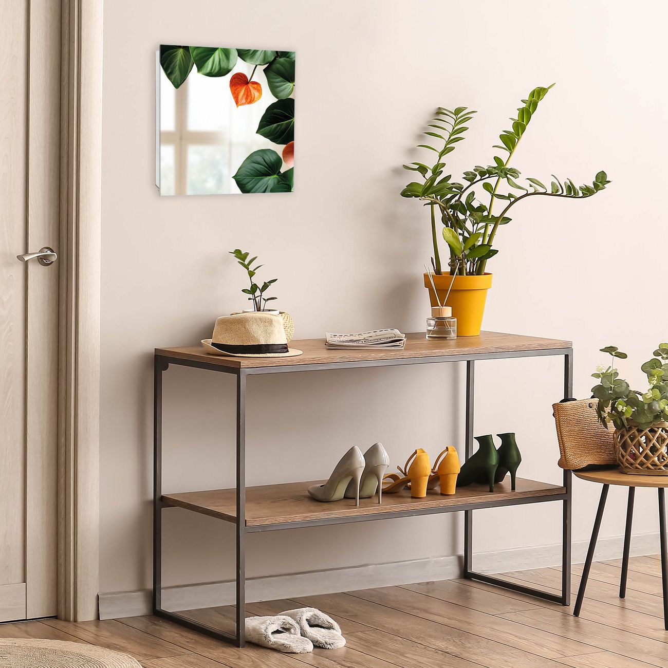Bringe Ordnung und Stil in deinen Eingangsbereich mit dem banjado Schlüsselkasten mit Spiegel. Die elegante Spiegelfront kombiniert Funktionalität mit modernem Design und macht die Schlüsselaufbewahrung zu einem dekorativen Highlight. ✅ Spiegel Schlüsselaufbewahrung mit Motiv Motiv Tropische Blütenpracht Der Design-Schlüsselkasten Motiv Motiv Tropische Blütenpracht bietet Platz für bis zu 50 Schlüssel, die auf 5 stabilen Reihen mit je 10 Haken übersichtlich verstaut werden. Mit seinen kompakten Maßen von 30 x 30 x 5 cm passt die Schlüsselbox perfekt auch in kleinere Räume. Der weiß lackierte Stahlkorpus mit rechts angeschlagenem Türscharnier harmoniert mit der Spiegelfront und fügt sich nahtlos in jedes Wohnambiente ein. Ob als Schlüsselorganizer für Zuhause oder als praktische Lösung für Büros, Praxen und Gewerbe, der banjado Schlüsselkasten sorgt für Ordnung und Übersicht. Die Spiegelfront verleiht dem Eingangsbereich zusätzliche Funktionalität und lässt Räume optisch größer wirken. Die Schlüsselbox Motiv Motiv Tropische Blütenpracht zur Wandmontage wird inklusive Befestigungsmaterial geliefert und ist schnell angebracht. So hast du deine Schlüssel jederzeit griffbereit und zugleich stilvoll verstaut. Mit diesem banjado Schlüsselkasten Motiv Motiv Tropische Blütenpracht kombinierst du praktische Aufbewahrung mit stilvollem Wohndesign. Ob privat oder geschäftlich, die Schlüsselbox sorgt für mehr Ordnung, Übersicht und ein wohnliches Ambiente.Vorteile im Überblick