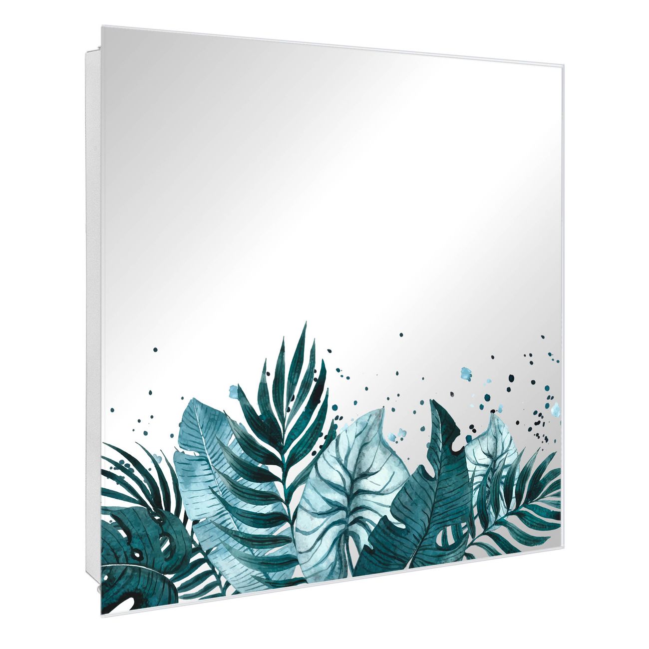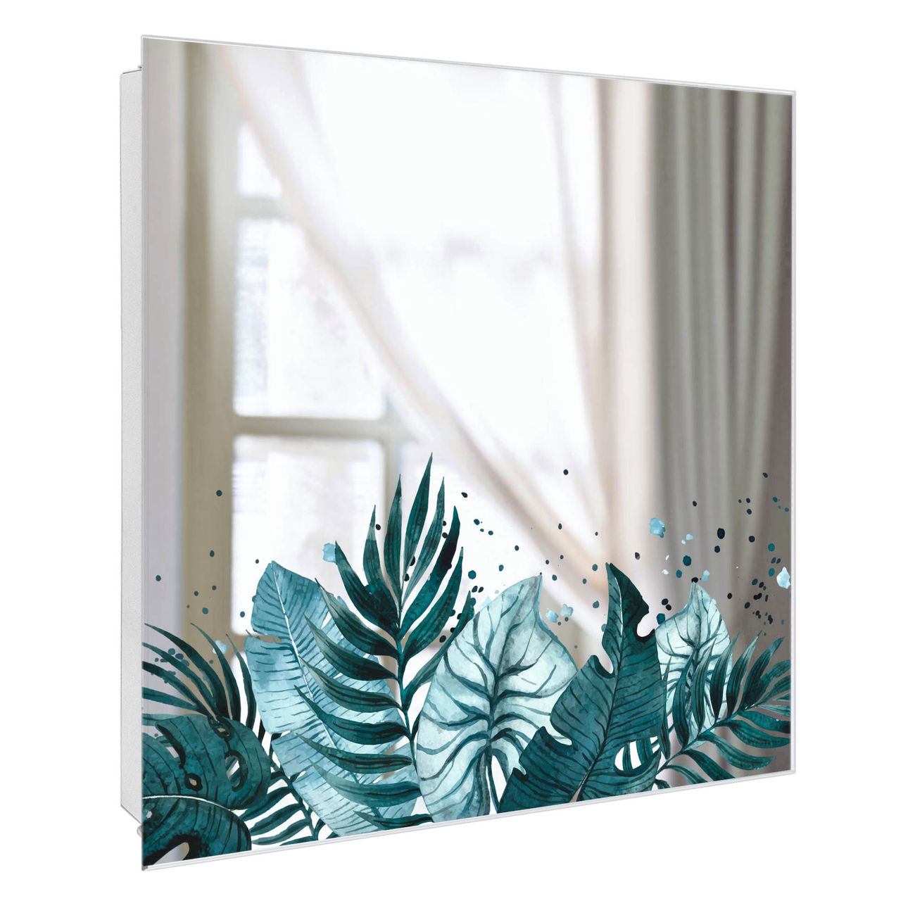 Bringe Ordnung und Stil in deinen Eingangsbereich mit dem banjado Schlüsselkasten mit Spiegel. Die elegante Spiegelfront kombiniert Funktionalität mit modernem Design und macht die Schlüsselaufbewahrung zu einem dekorativen Highlight. ✅ Spiegel Schlüsselaufbewahrung mit Motiv Motiv Tropisches Aquarell Der Design-Schlüsselkasten Motiv Motiv Tropisches Aquarell bietet Platz für bis zu 50 Schlüssel, die auf 5 stabilen Reihen mit je 10 Haken übersichtlich verstaut werden. Mit seinen kompakten Maßen von 30 x 30 x 5 cm passt die Schlüsselbox perfekt auch in kleinere Räume. Der weiß lackierte Stahlkorpus mit rechts angeschlagenem Türscharnier harmoniert mit der Spiegelfront und fügt sich nahtlos in jedes Wohnambiente ein. Ob als Schlüsselorganizer für Zuhause oder als praktische Lösung für Büros, Praxen und Gewerbe, der banjado Schlüsselkasten sorgt für Ordnung und Übersicht. Die Spiegelfront verleiht dem Eingangsbereich zusätzliche Funktionalität und lässt Räume optisch größer wirken. Die Schlüsselbox Motiv Motiv Tropisches Aquarell zur Wandmontage wird inklusive Befestigungsmaterial geliefert und ist schnell angebracht. So hast du deine Schlüssel jederzeit griffbereit und zugleich stilvoll verstaut. Mit diesem banjado Schlüsselkasten Motiv Motiv Tropisches Aquarell kombinierst du praktische Aufbewahrung mit stilvollem Wohndesign. Ob privat oder geschäftlich, die Schlüsselbox sorgt für mehr Ordnung, Übersicht und ein wohnliches Ambiente.Vorteile im Überblick