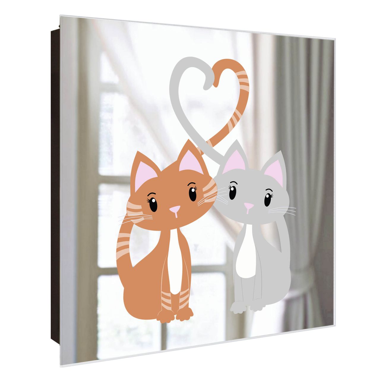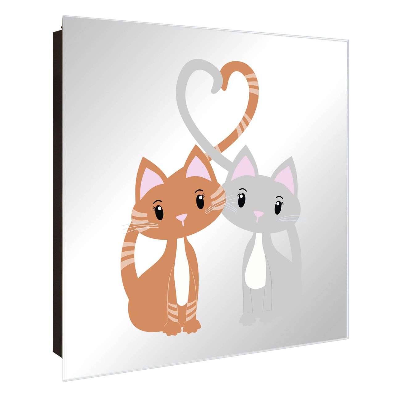 Spiegel Schlüsselkasten - Design Schlüsselbox Motiv Verliebte Katzen 2