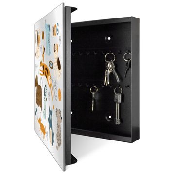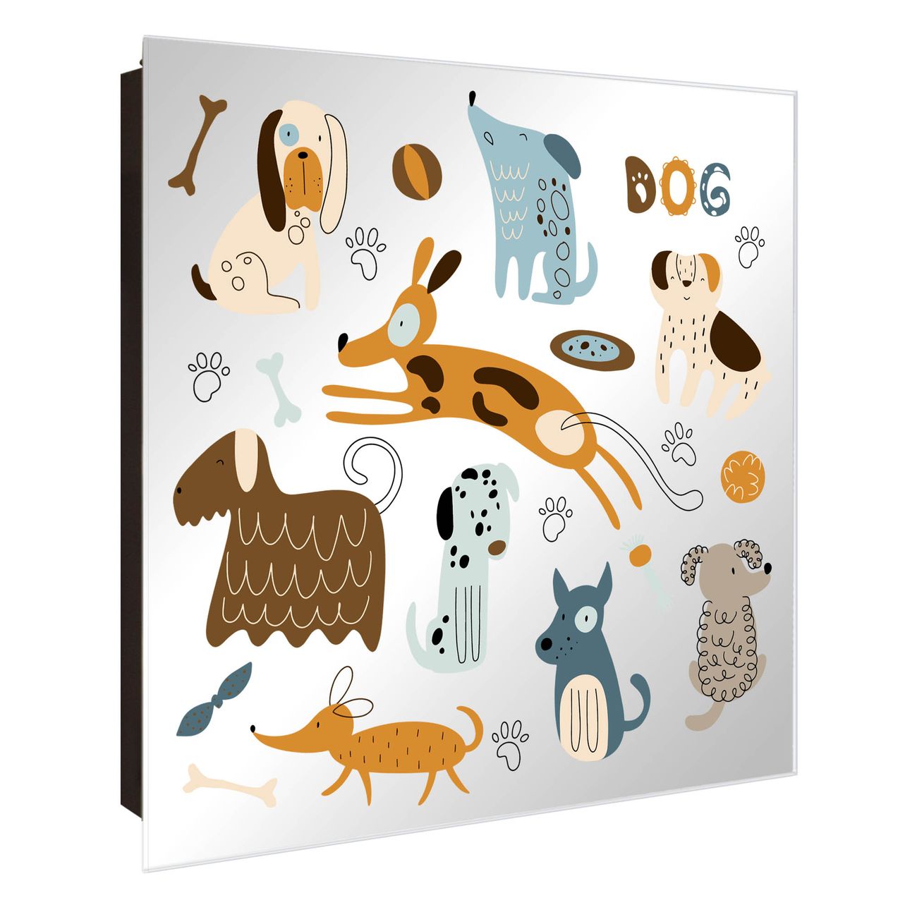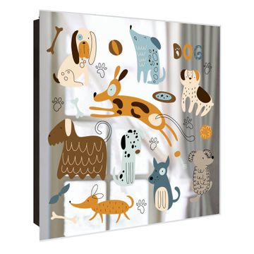 Spiegel Schlüsselkasten - Design Schlüsselbox Motiv Verspielte Hunde-Illustration