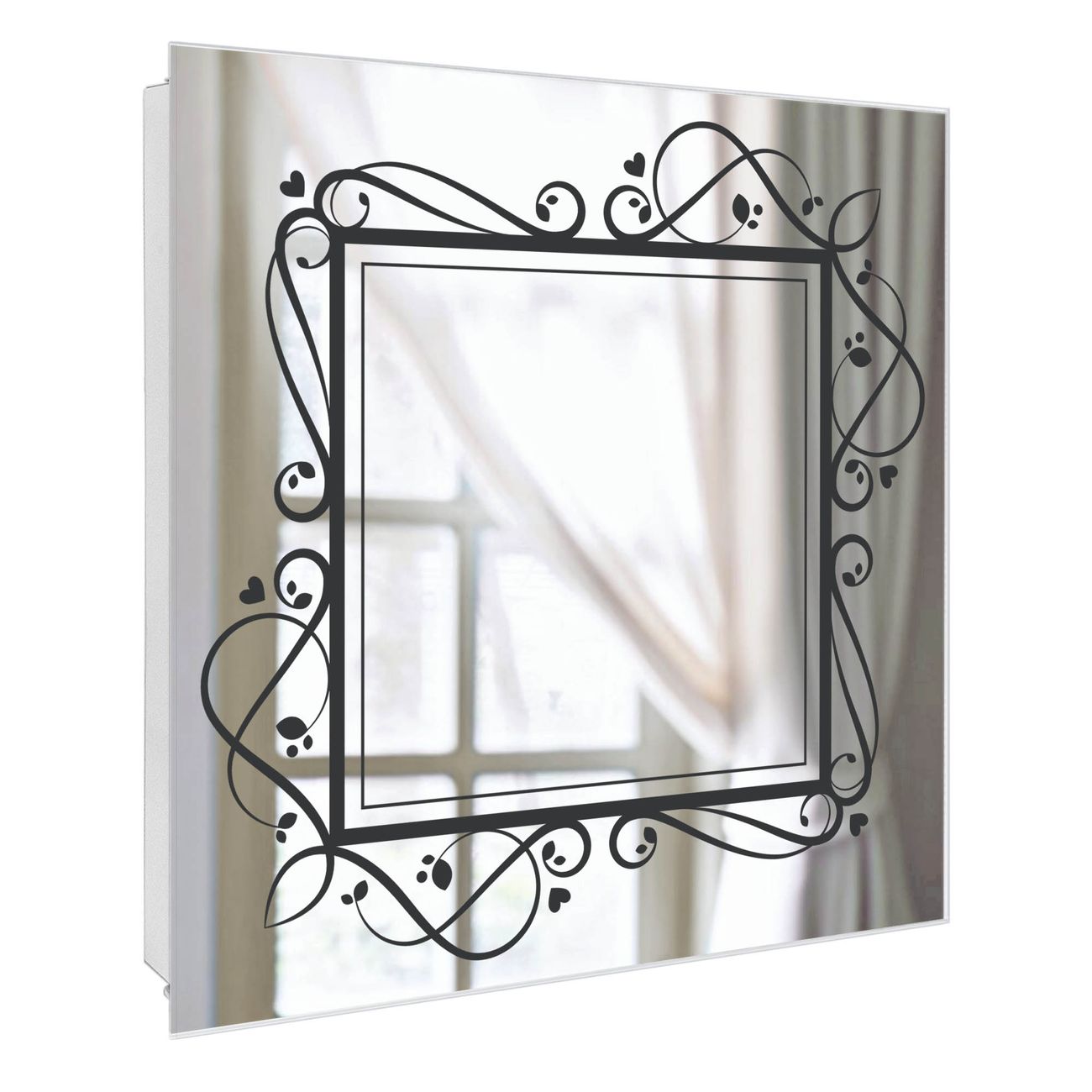 Spiegel Schlüsselkasten - Design Schlüsselbox Motiv Verzierter Herzrahmen