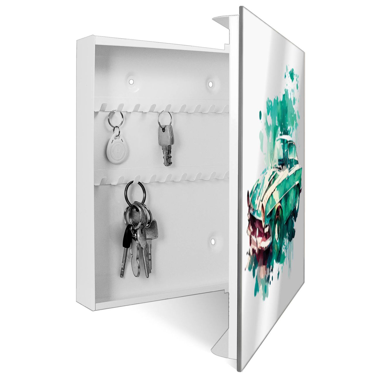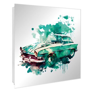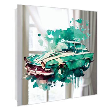 Spiegel Schlüsselkasten - Design Schlüsselbox Motiv Vintage Auto Aquarell