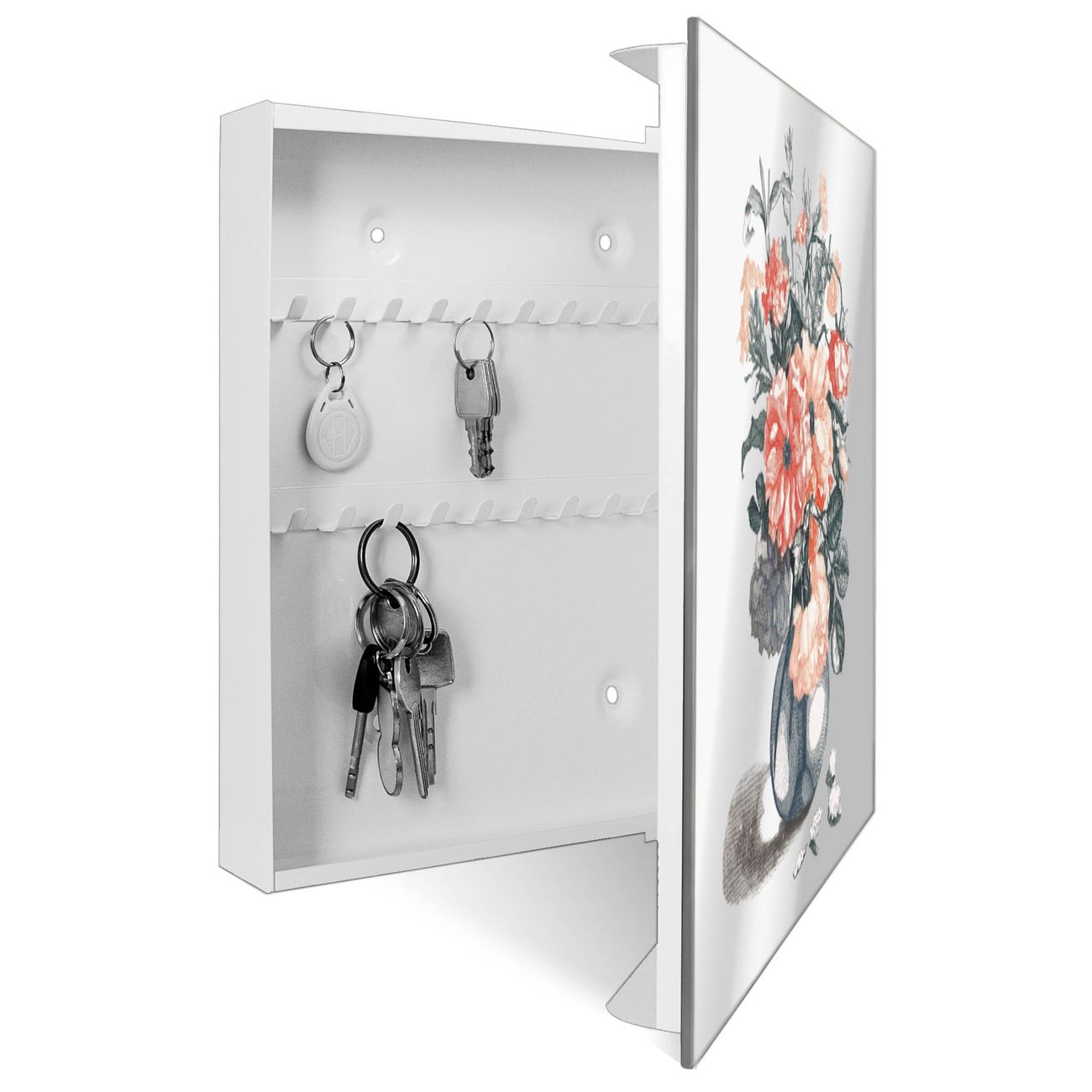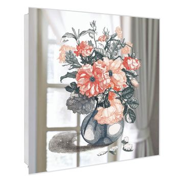 Spiegel Schlüsselkasten - Design Schlüsselbox Motiv Vintage Blumenstrauß