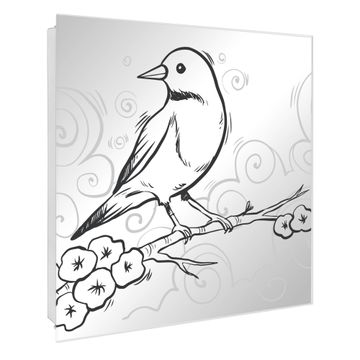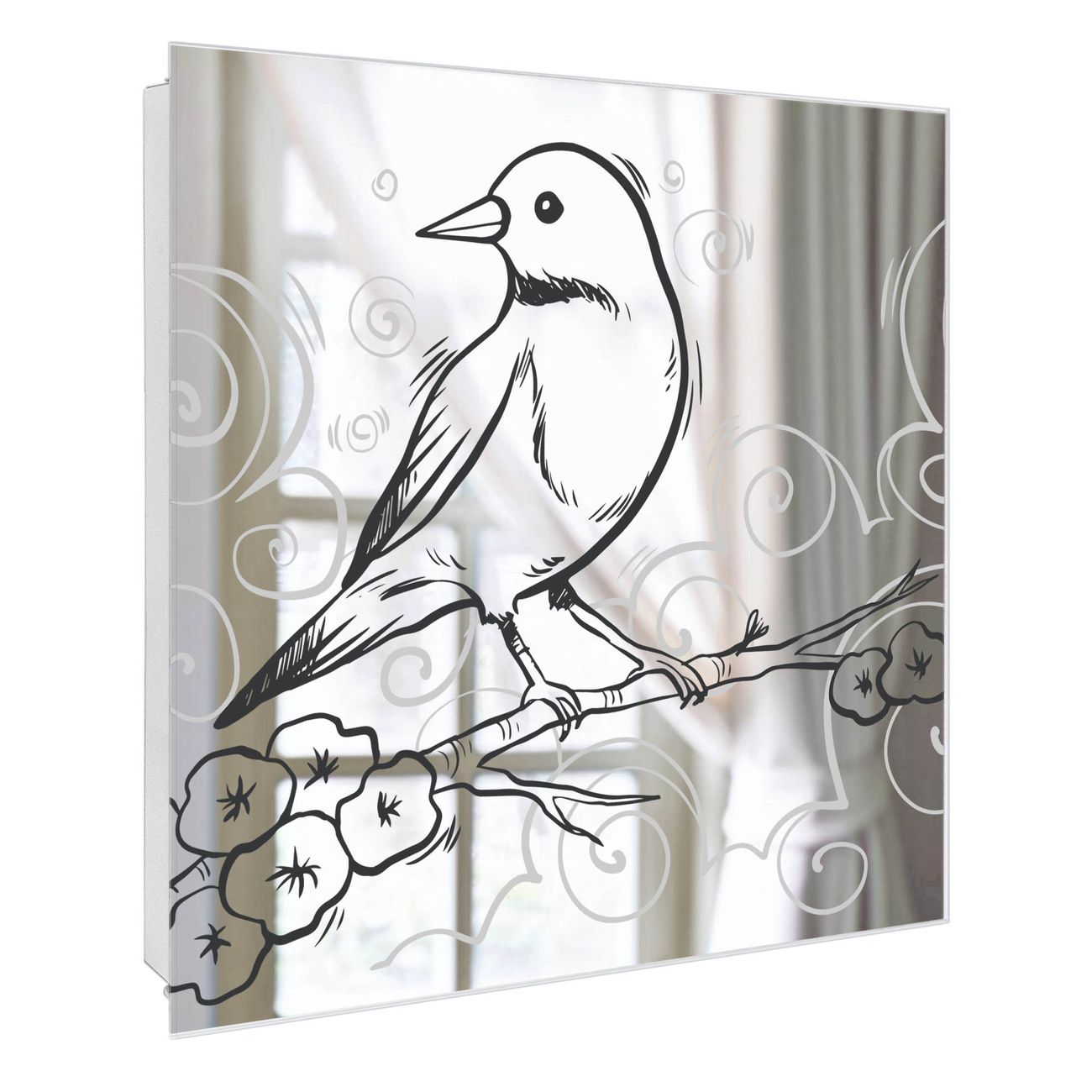 Spiegel Schlüsselkasten - Design Schlüsselbox Motiv Vogel auf Blütenzweig