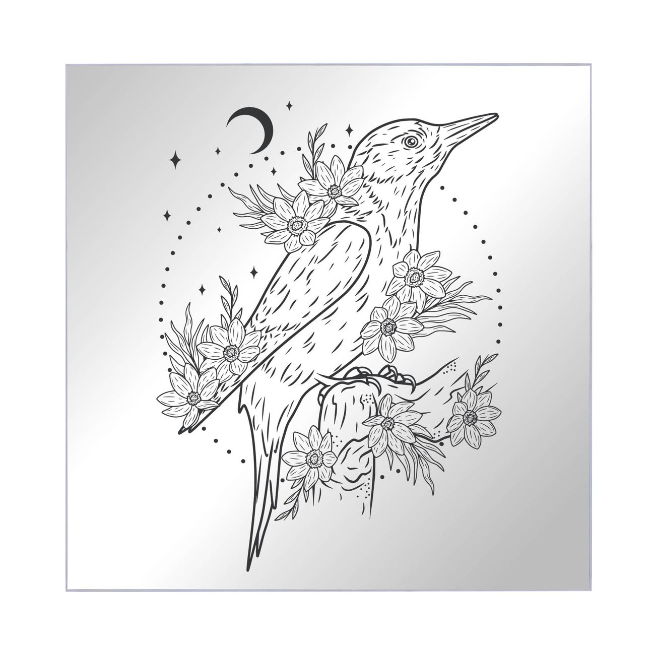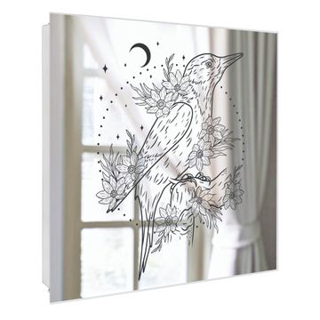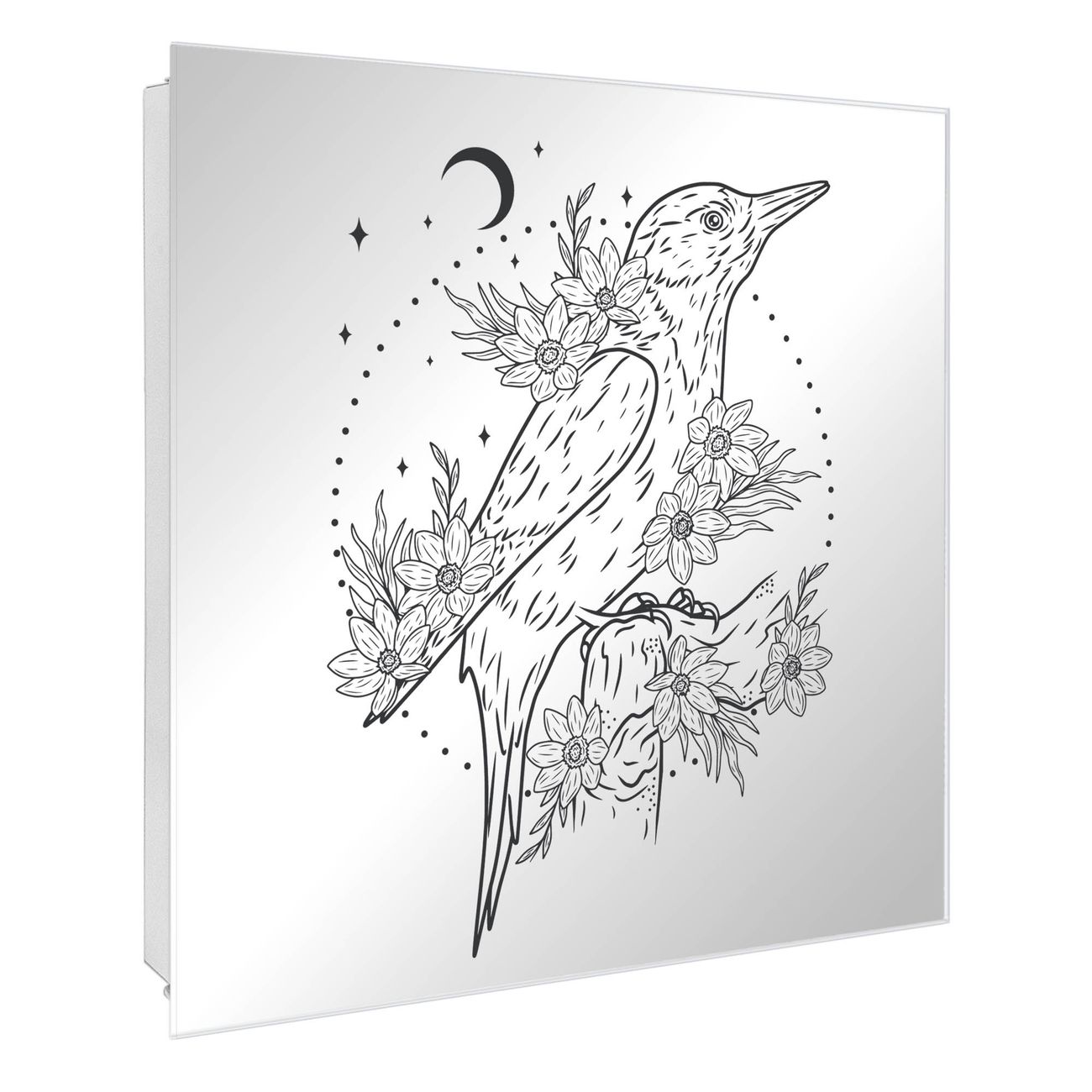Spiegel Schlüsselkasten - Design Schlüsselbox Motiv Vogel und Blumen im Mondlicht