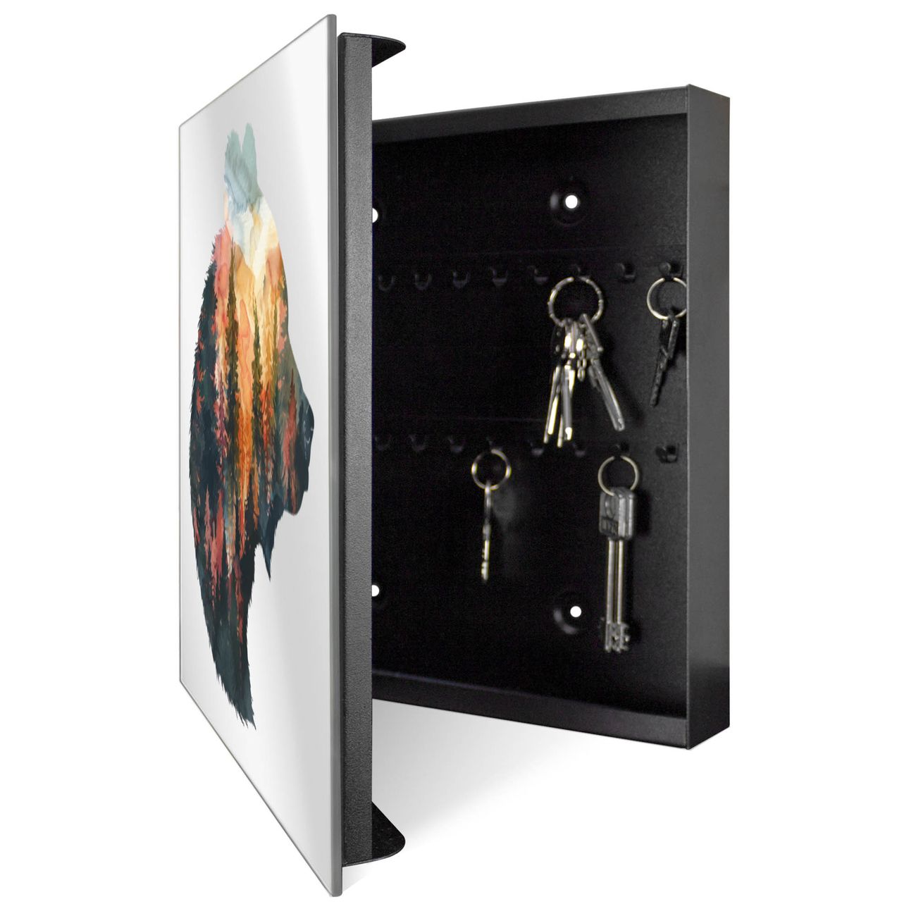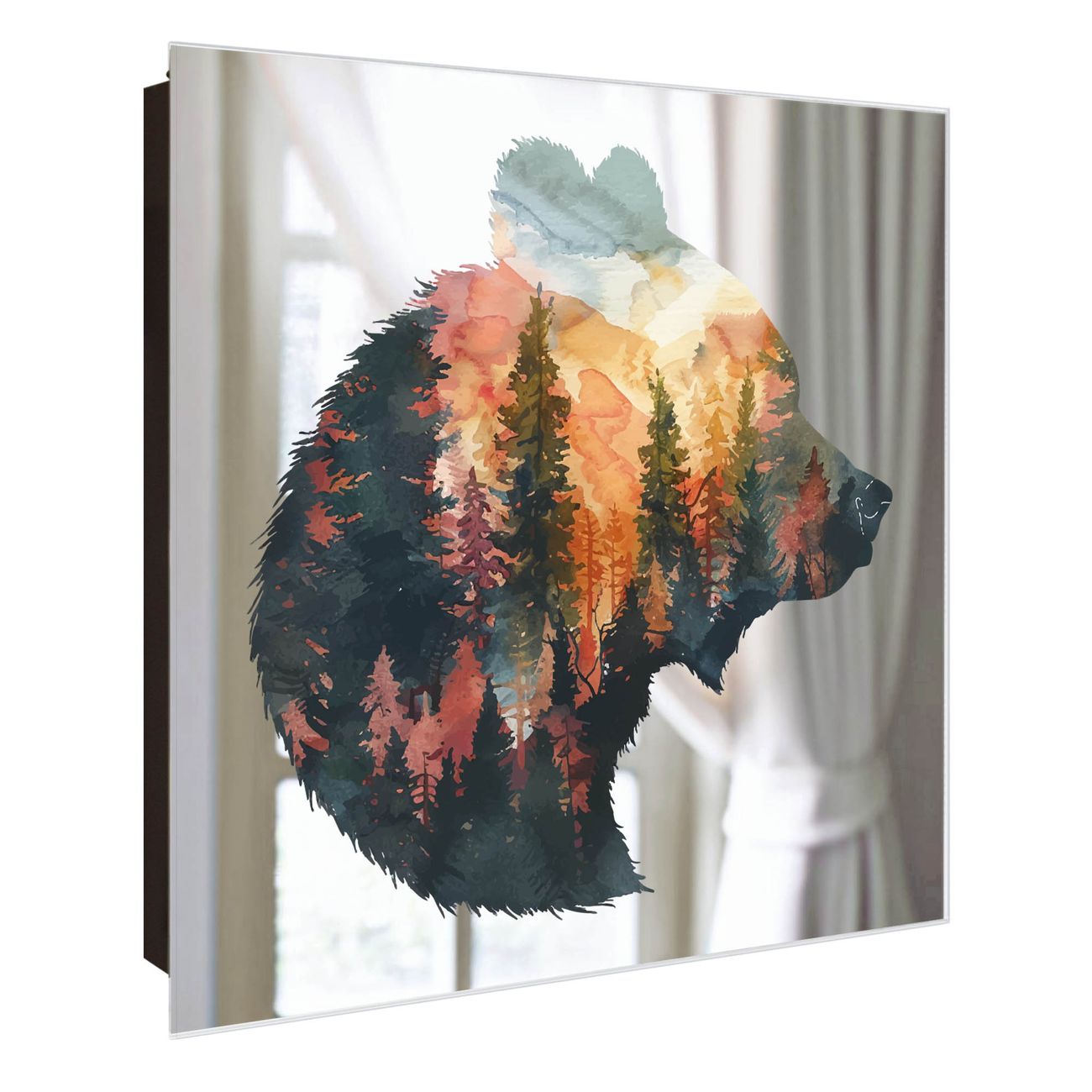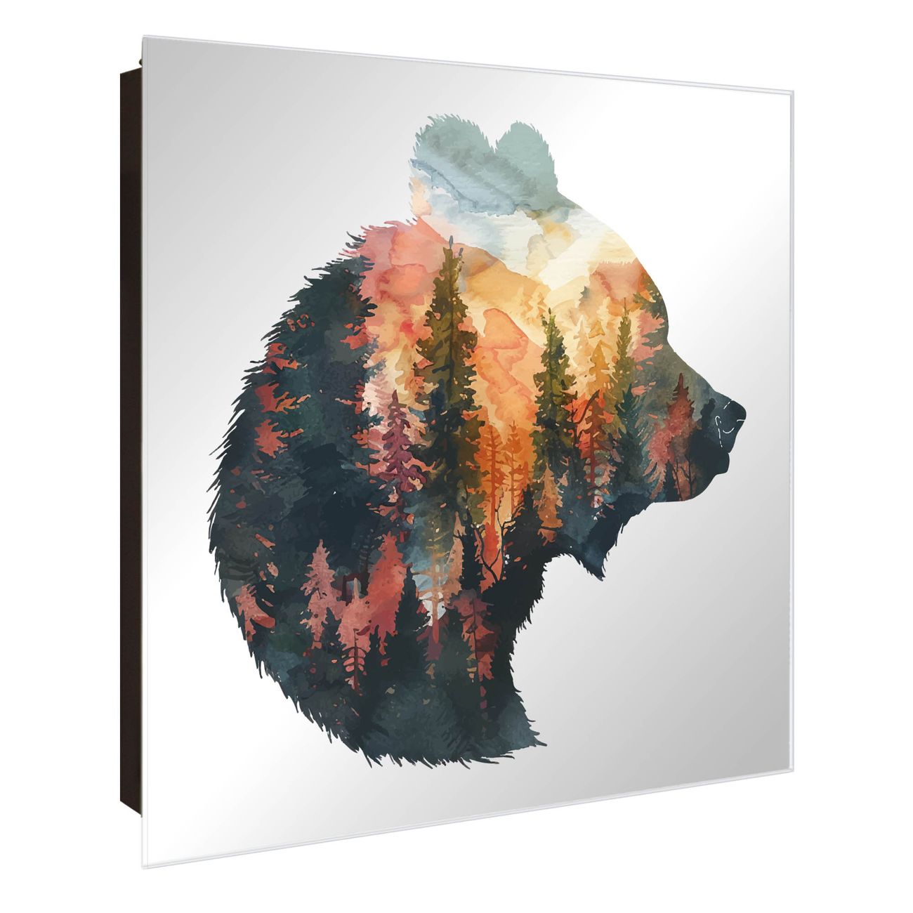 Spiegel Schlüsselkasten - Design Schlüsselbox Motiv Wald und Bär
