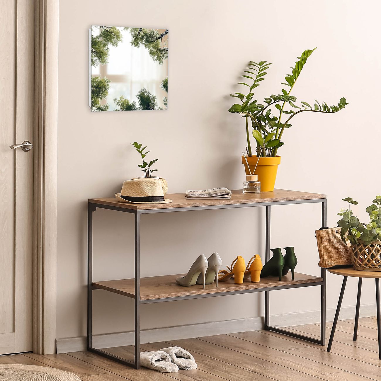 Bringe Ordnung und Stil in deinen Eingangsbereich mit dem banjado Schlüsselkasten mit Spiegel. Die elegante Spiegelfront kombiniert Funktionalität mit modernem Design und macht die Schlüsselaufbewahrung zu einem dekorativen Highlight. ✅ Spiegel Schlüsselaufbewahrung mit Motiv Motiv Waldhimmel Der Design-Schlüsselkasten Motiv Motiv Waldhimmel bietet Platz für bis zu 50 Schlüssel, die auf 5 stabilen Reihen mit je 10 Haken übersichtlich verstaut werden. Mit seinen kompakten Maßen von 30 x 30 x 5 cm passt die Schlüsselbox perfekt auch in kleinere Räume. Der weiß lackierte Stahlkorpus mit rechts angeschlagenem Türscharnier harmoniert mit der Spiegelfront und fügt sich nahtlos in jedes Wohnambiente ein. Ob als Schlüsselorganizer für Zuhause oder als praktische Lösung für Büros, Praxen und Gewerbe, der banjado Schlüsselkasten sorgt für Ordnung und Übersicht. Die Spiegelfront verleiht dem Eingangsbereich zusätzliche Funktionalität und lässt Räume optisch größer wirken. Die Schlüsselbox Motiv Motiv Waldhimmel zur Wandmontage wird inklusive Befestigungsmaterial geliefert und ist schnell angebracht. So hast du deine Schlüssel jederzeit griffbereit und zugleich stilvoll verstaut. Mit diesem banjado Schlüsselkasten Motiv Motiv Waldhimmel kombinierst du praktische Aufbewahrung mit stilvollem Wohndesign. Ob privat oder geschäftlich, die Schlüsselbox sorgt für mehr Ordnung, Übersicht und ein wohnliches Ambiente.Vorteile im Überblick