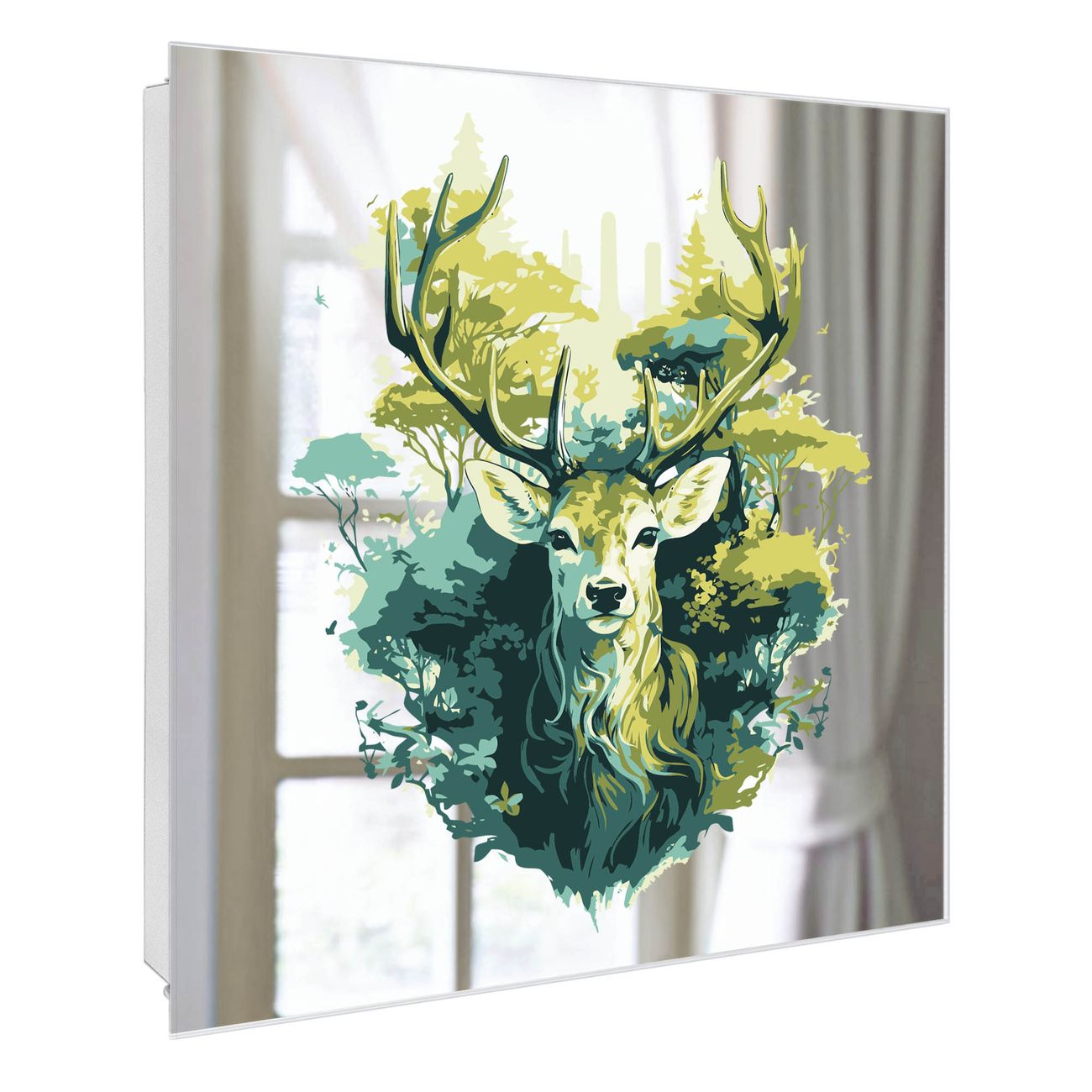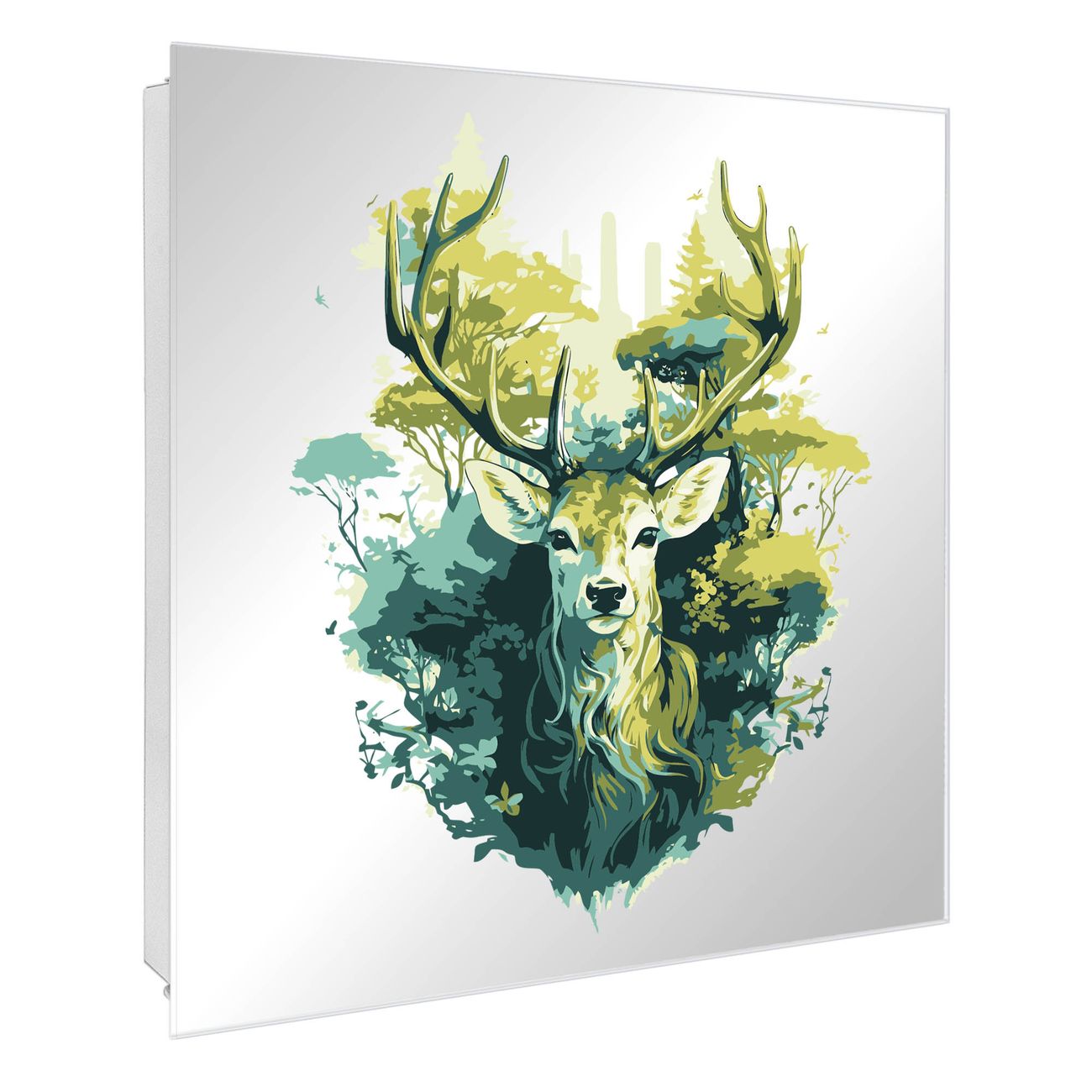 Spiegel Schlüsselkasten - Design Schlüsselbox Motiv Waldhirsche
