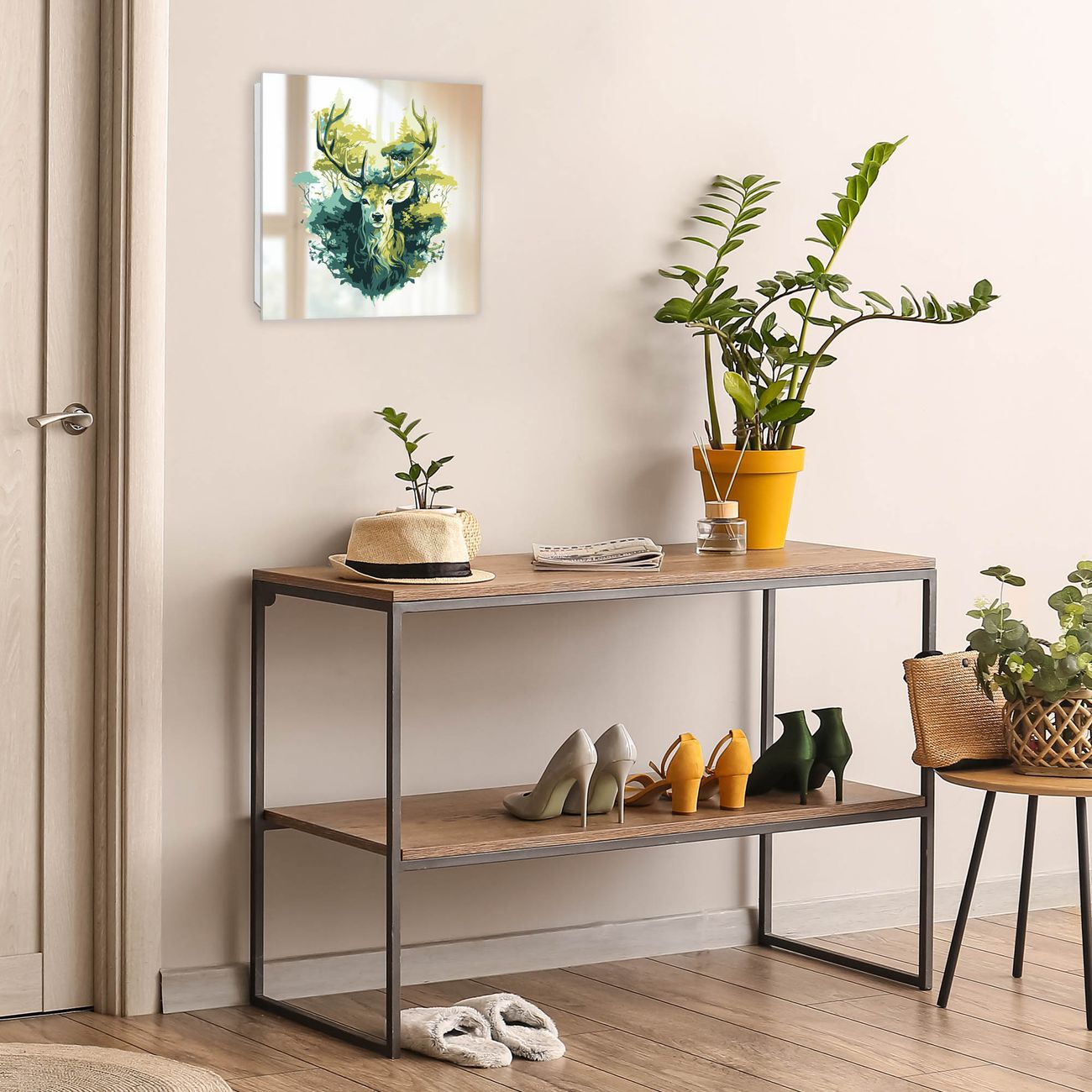 Bringe Ordnung und Stil in deinen Eingangsbereich mit dem banjado Schlüsselkasten mit Spiegel. Die elegante Spiegelfront kombiniert Funktionalität mit modernem Design und macht die Schlüsselaufbewahrung zu einem dekorativen Highlight. ✅ Spiegel Schlüsselaufbewahrung mit Motiv Motiv Waldhirsche Der Design-Schlüsselkasten Motiv Motiv Waldhirsche bietet Platz für bis zu 50 Schlüssel, die auf 5 stabilen Reihen mit je 10 Haken übersichtlich verstaut werden. Mit seinen kompakten Maßen von 30 x 30 x 5 cm passt die Schlüsselbox perfekt auch in kleinere Räume. Der weiß lackierte Stahlkorpus mit rechts angeschlagenem Türscharnier harmoniert mit der Spiegelfront und fügt sich nahtlos in jedes Wohnambiente ein. Ob als Schlüsselorganizer für Zuhause oder als praktische Lösung für Büros, Praxen und Gewerbe, der banjado Schlüsselkasten sorgt für Ordnung und Übersicht. Die Spiegelfront verleiht dem Eingangsbereich zusätzliche Funktionalität und lässt Räume optisch größer wirken. Die Schlüsselbox Motiv Motiv Waldhirsche zur Wandmontage wird inklusive Befestigungsmaterial geliefert und ist schnell angebracht. So hast du deine Schlüssel jederzeit griffbereit und zugleich stilvoll verstaut. Mit diesem banjado Schlüsselkasten Motiv Motiv Waldhirsche kombinierst du praktische Aufbewahrung mit stilvollem Wohndesign. Ob privat oder geschäftlich, die Schlüsselbox sorgt für mehr Ordnung, Übersicht und ein wohnliches Ambiente.Vorteile im Überblick
