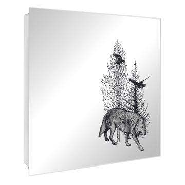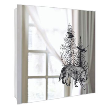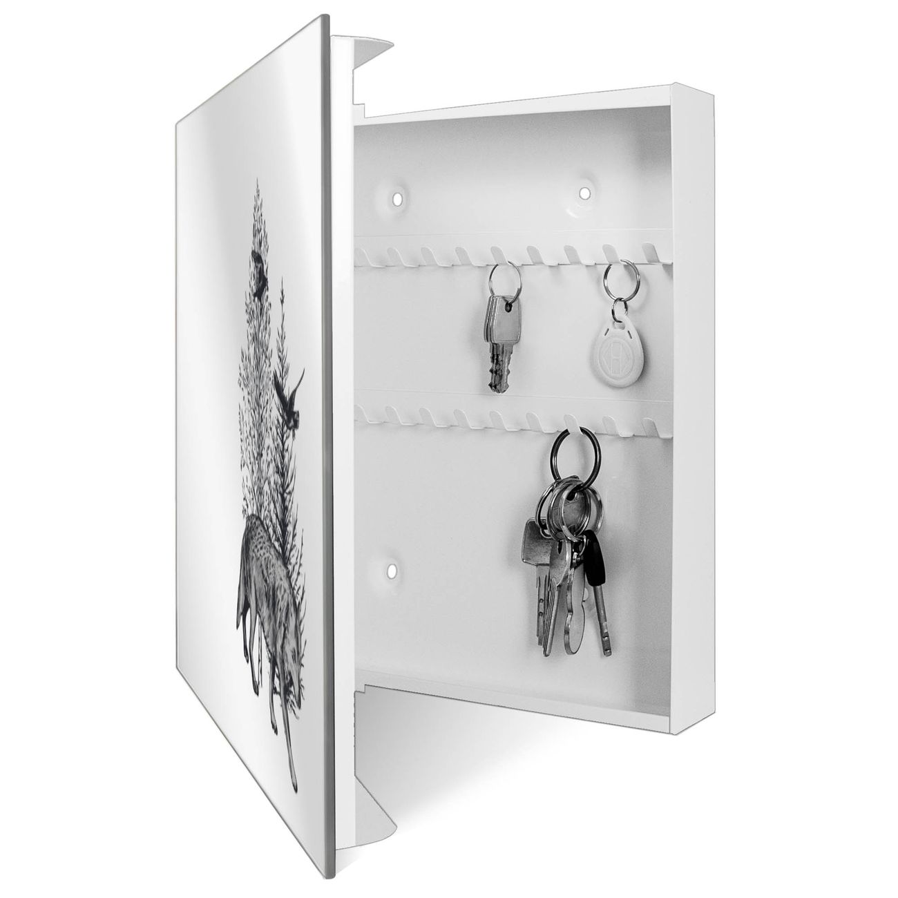 Spiegel Schlüsselkasten - Design Schlüsselbox Motiv Waldtiere in Schwarz-Weiß
