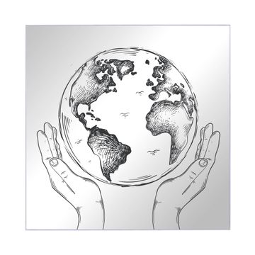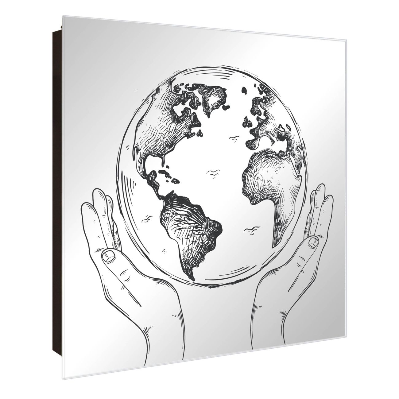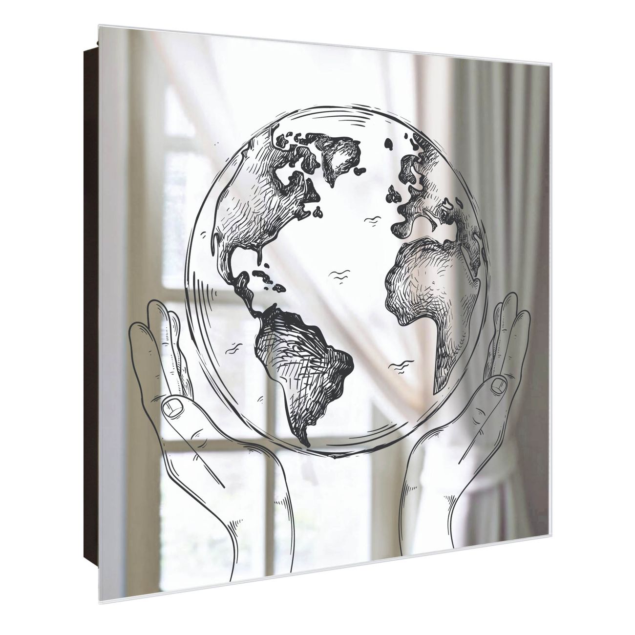 Spiegel Schlüsselkasten - Design Schlüsselbox Motiv Welt in den Händen