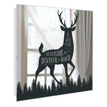 Spiegel Schlüsselkasten - Design Schlüsselbox Motiv Wilder Hirsch