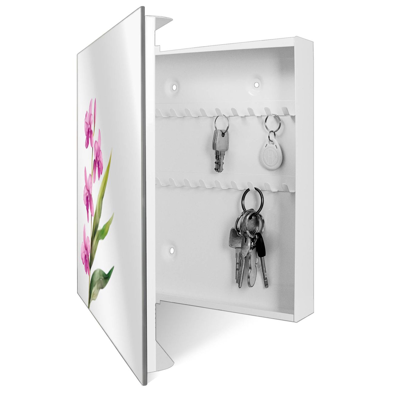 Spiegel Schlüsselkasten - Design Schlüsselbox Motiv Zarte Orchidee