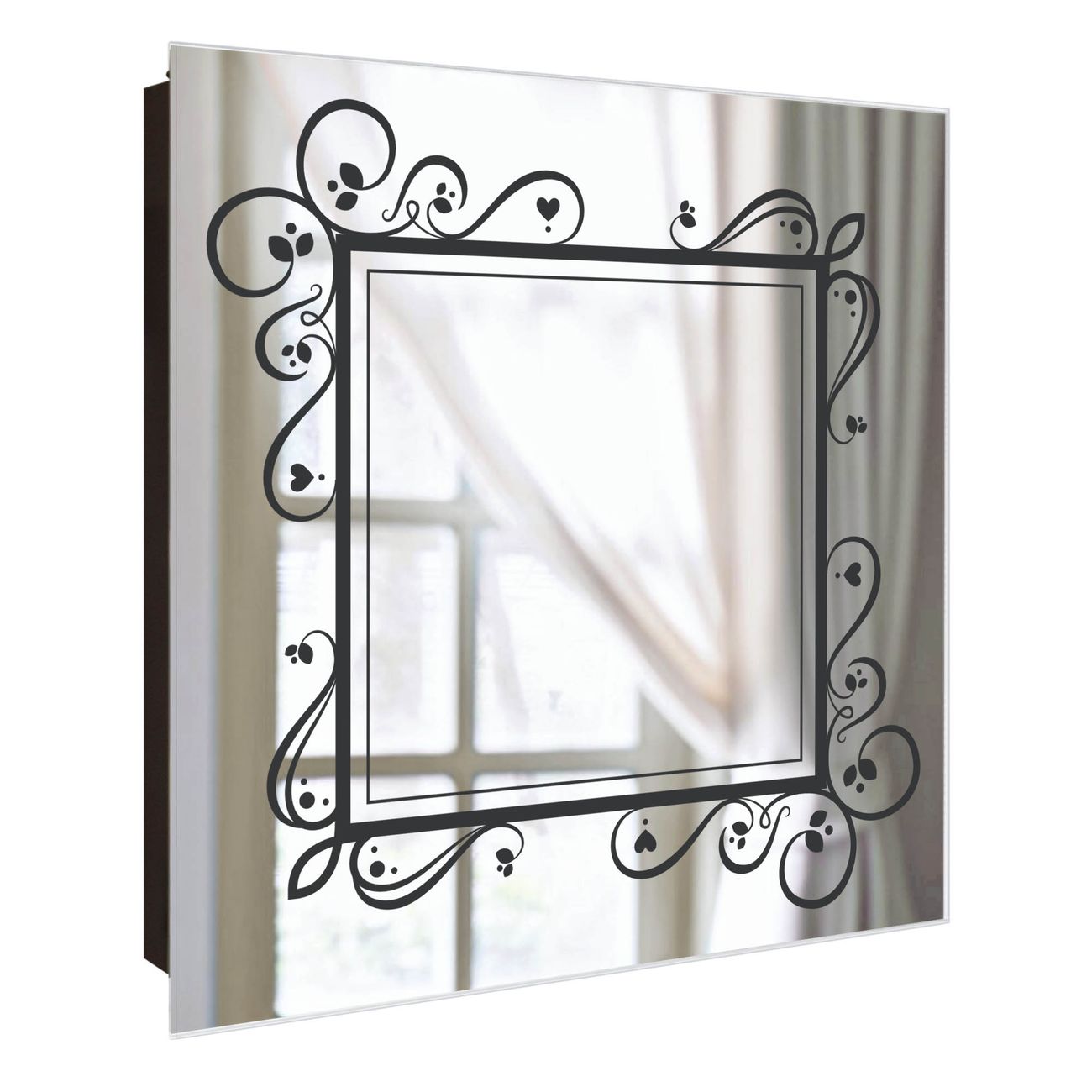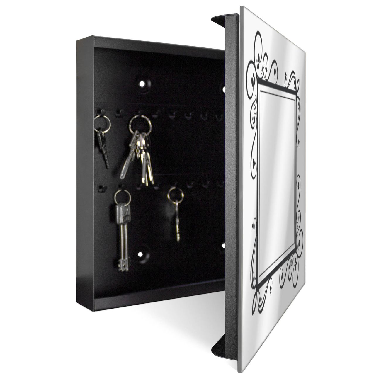 Spiegel Schlüsselkasten - Design Schlüsselbox Motiv Zierlicher Rahmen mit Herzen