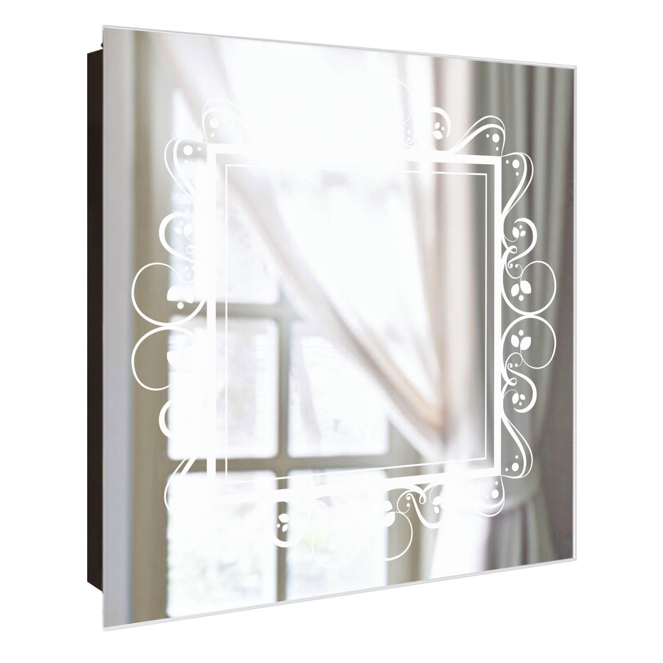 Spiegel Schlüsselkasten - Design Schlüsselbox Motiv Zierrahmen Grau-Weiß
