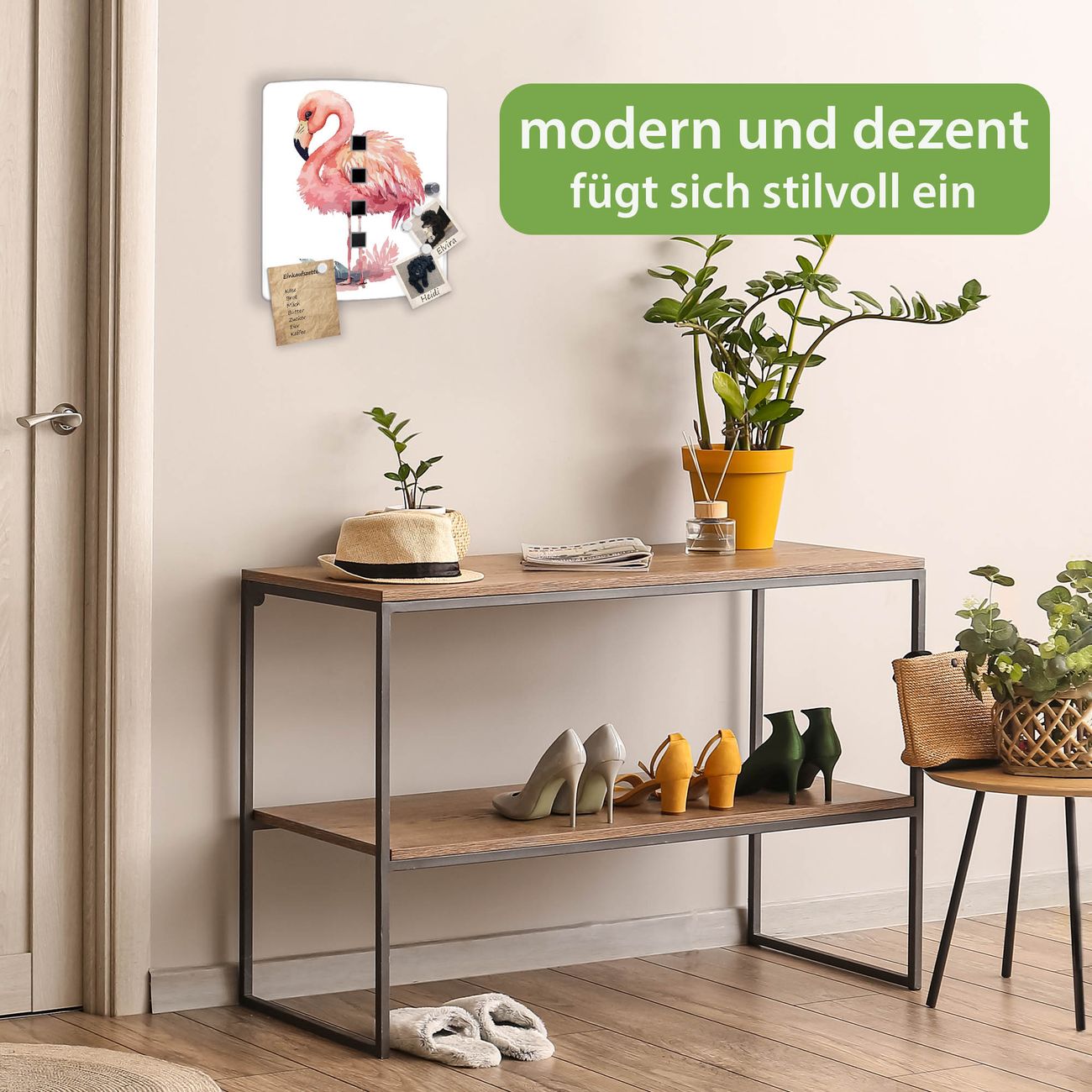 Funktion / Nutzen: Die leicht geschwungene Edelstahltür ist mit einer hochwertigen Motivfolie und dem Motiv Motiv Aquarell-Flamingo klein kaschiert. Ein praktischer Magnetverschluss ermöglicht Ihnen ein schnelles Öffnen und Schließen. Befestigt wird der Schlüsselkasten an 2 Stellen auf der Rückseite, passendes Montagematerial fügen wir bereits bei.