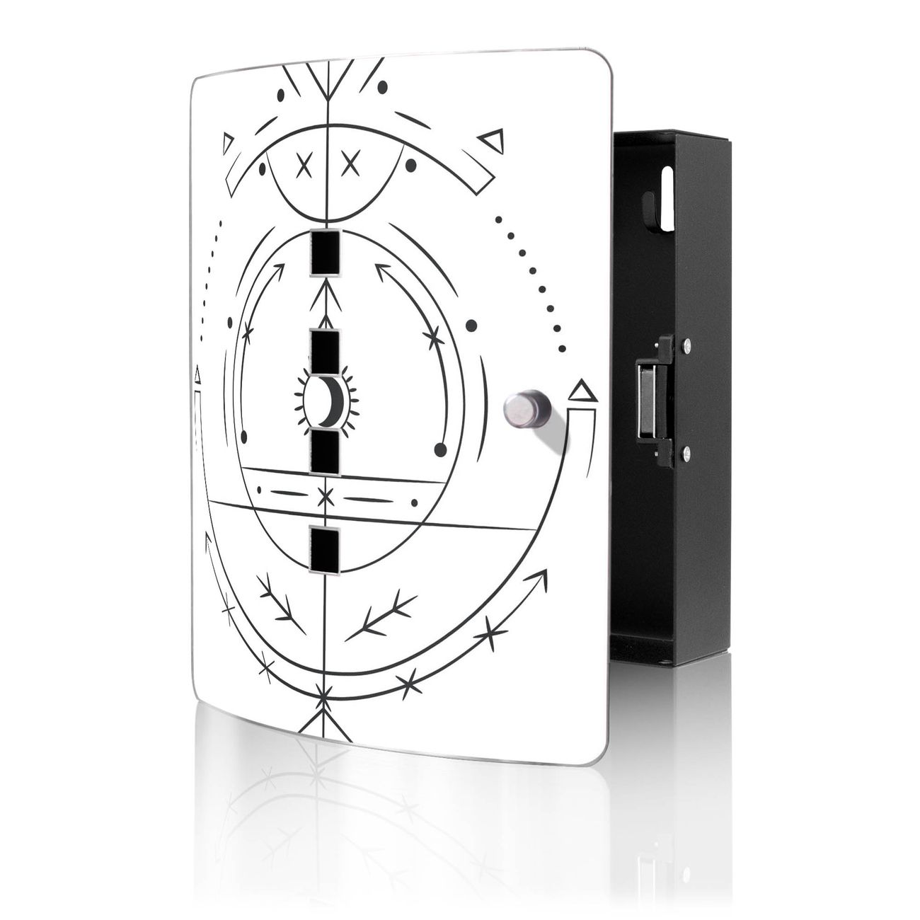 Funktion / Nutzen: Die leicht geschwungene Edelstahltür ist mit einer hochwertigen Motivfolie und dem Motiv Motiv Astronomie 9 kaschiert. Ein praktischer Magnetverschluss ermöglicht Ihnen ein schnelles Öffnen und Schließen. Befestigt wird der Schlüsselkasten an 2 Stellen auf der Rückseite, passendes Montagematerial fügen wir bereits bei.