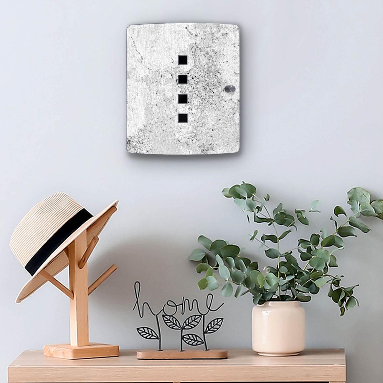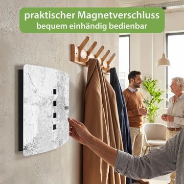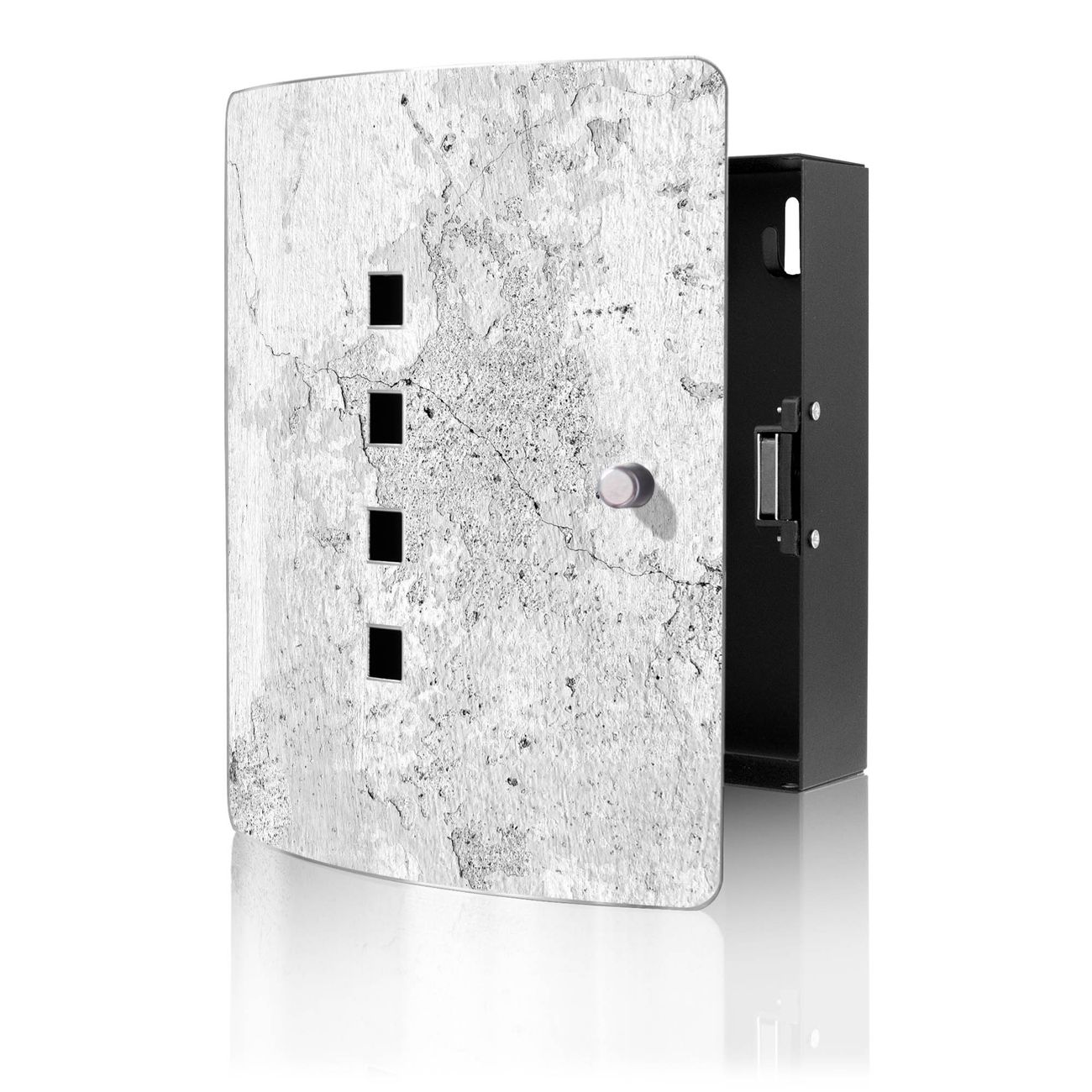 Funktion / Nutzen: Die leicht geschwungene Edelstahltür ist mit einer hochwertigen Motivfolie und dem Motiv Motiv Betontextur Grau 2 kaschiert. Ein praktischer Magnetverschluss ermöglicht Ihnen ein schnelles Öffnen und Schließen. Befestigt wird der Schlüsselkasten an 2 Stellen auf der Rückseite, passendes Montagematerial fügen wir bereits bei.