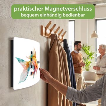 Funktion / Nutzen: Die leicht geschwungene Edelstahltür ist mit einer hochwertigen Motivfolie und dem Motiv Motiv Farbenfroher Goldfisch kaschiert. Ein praktischer Magnetverschluss ermöglicht Ihnen ein schnelles Öffnen und Schließen. Befestigt wird der Schlüsselkasten an 2 Stellen auf der Rückseite, passendes Montagematerial fügen wir bereits bei.