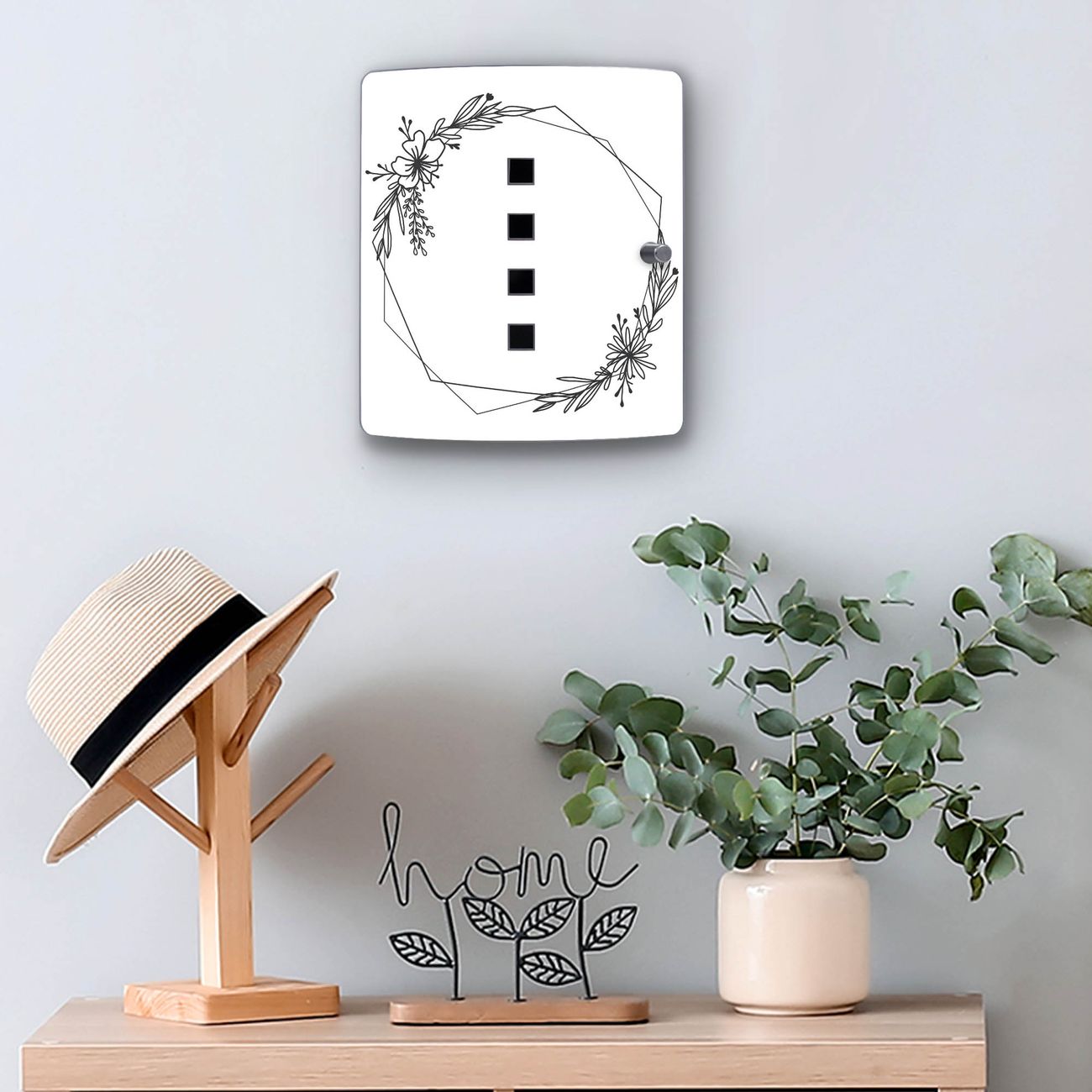 Funktion / Nutzen: Die leicht geschwungene Edelstahltür ist mit einer hochwertigen Motivfolie und dem Motiv Motiv Floraler Rahmen kaschiert. Ein praktischer Magnetverschluss ermöglicht Ihnen ein schnelles Öffnen und Schließen. Befestigt wird der Schlüsselkasten an 2 Stellen auf der Rückseite, passendes Montagematerial fügen wir bereits bei.