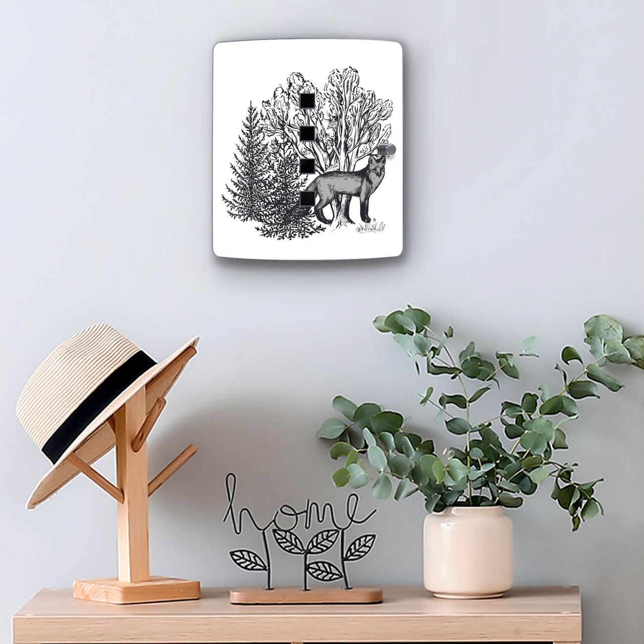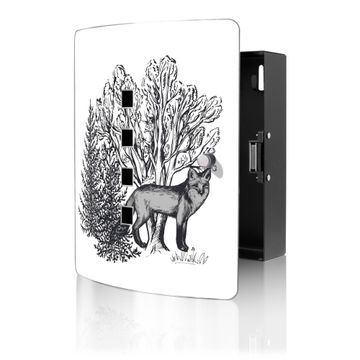 Schlüsselkasten Motiv Fuchs in Schwarz-Weiß