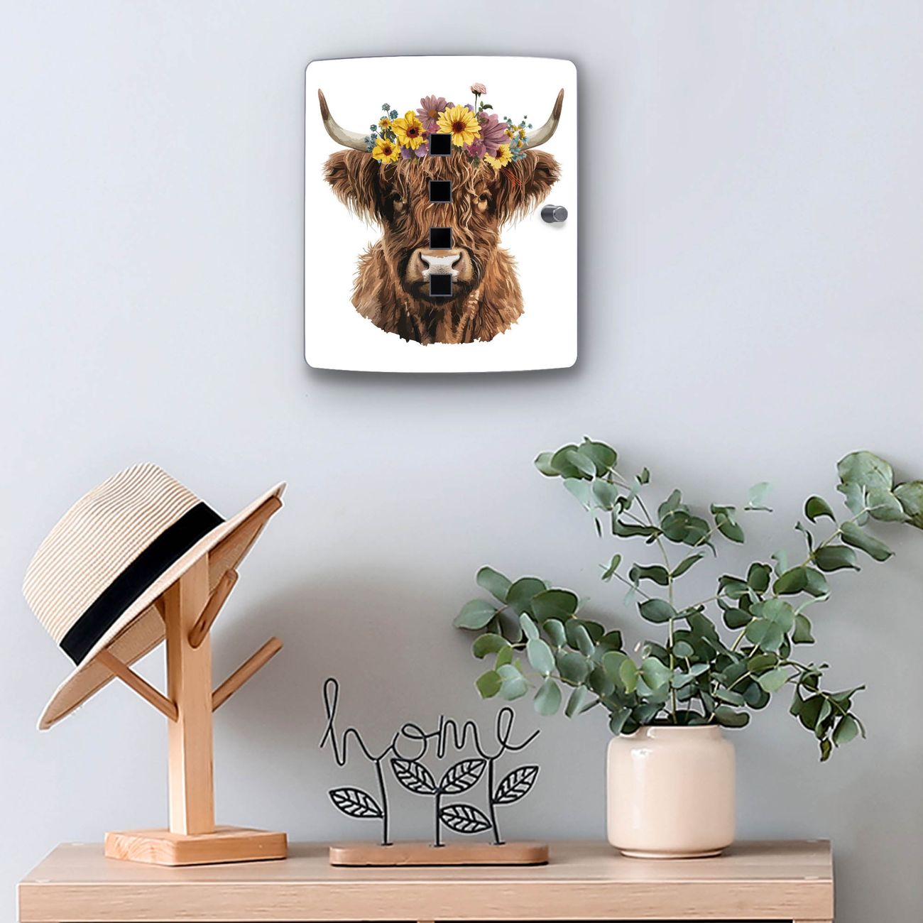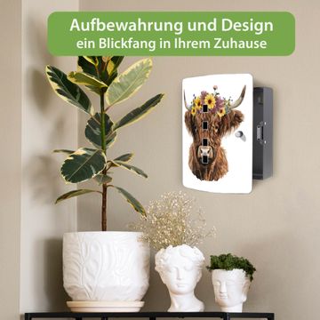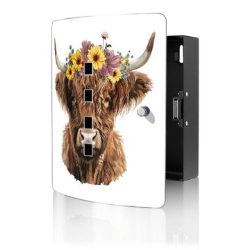 Schlüsselkasten Motiv Hochlandkuh mit Blumenkrone
