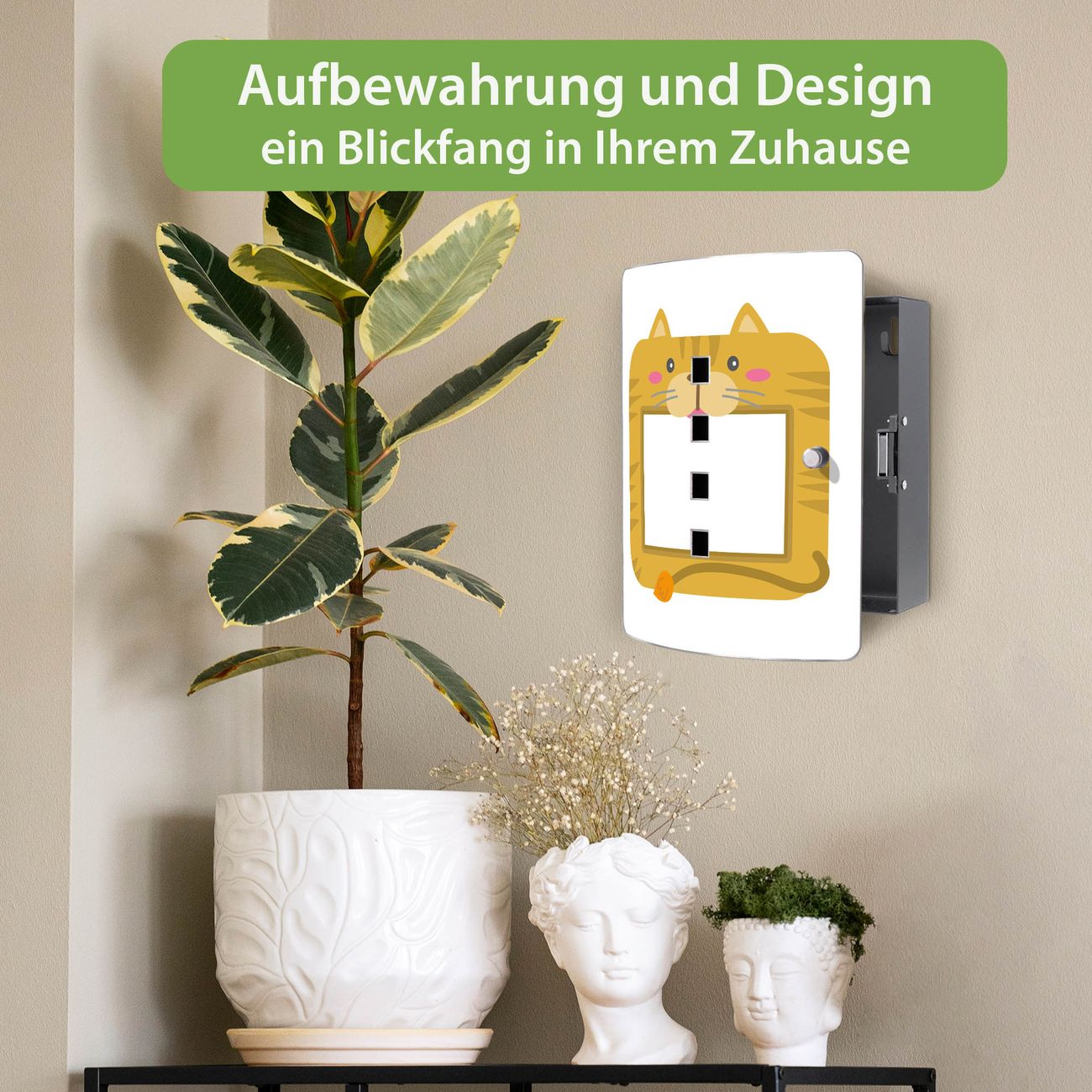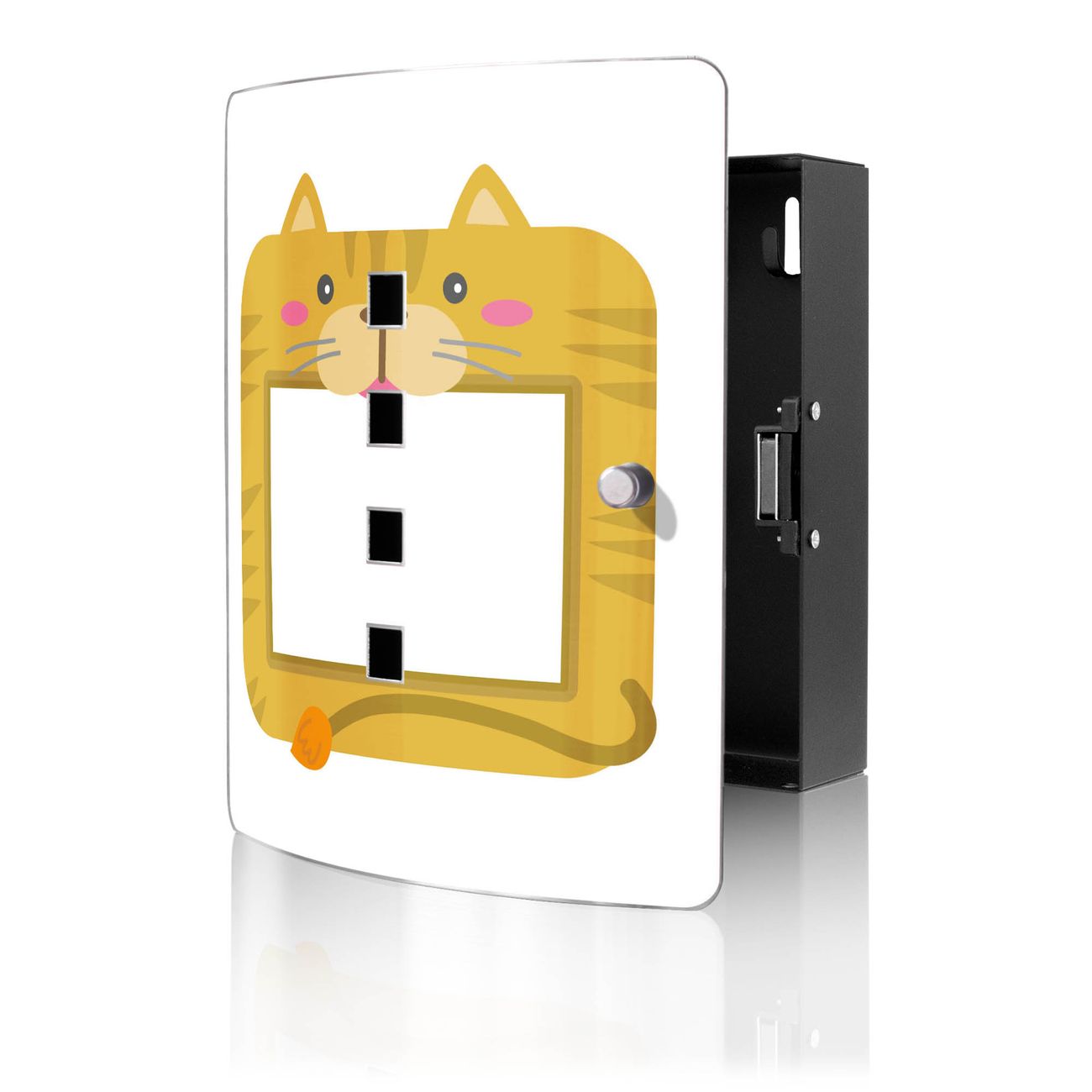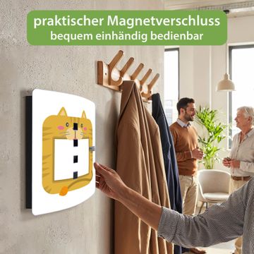 Funktion / Nutzen: Die leicht geschwungene Edelstahltür ist mit einer hochwertigen Motivfolie und dem Motiv Motiv Katze Bilderrahmen kaschiert. Ein praktischer Magnetverschluss ermöglicht Ihnen ein schnelles Öffnen und Schließen. Befestigt wird der Schlüsselkasten an 2 Stellen auf der Rückseite, passendes Montagematerial fügen wir bereits bei.