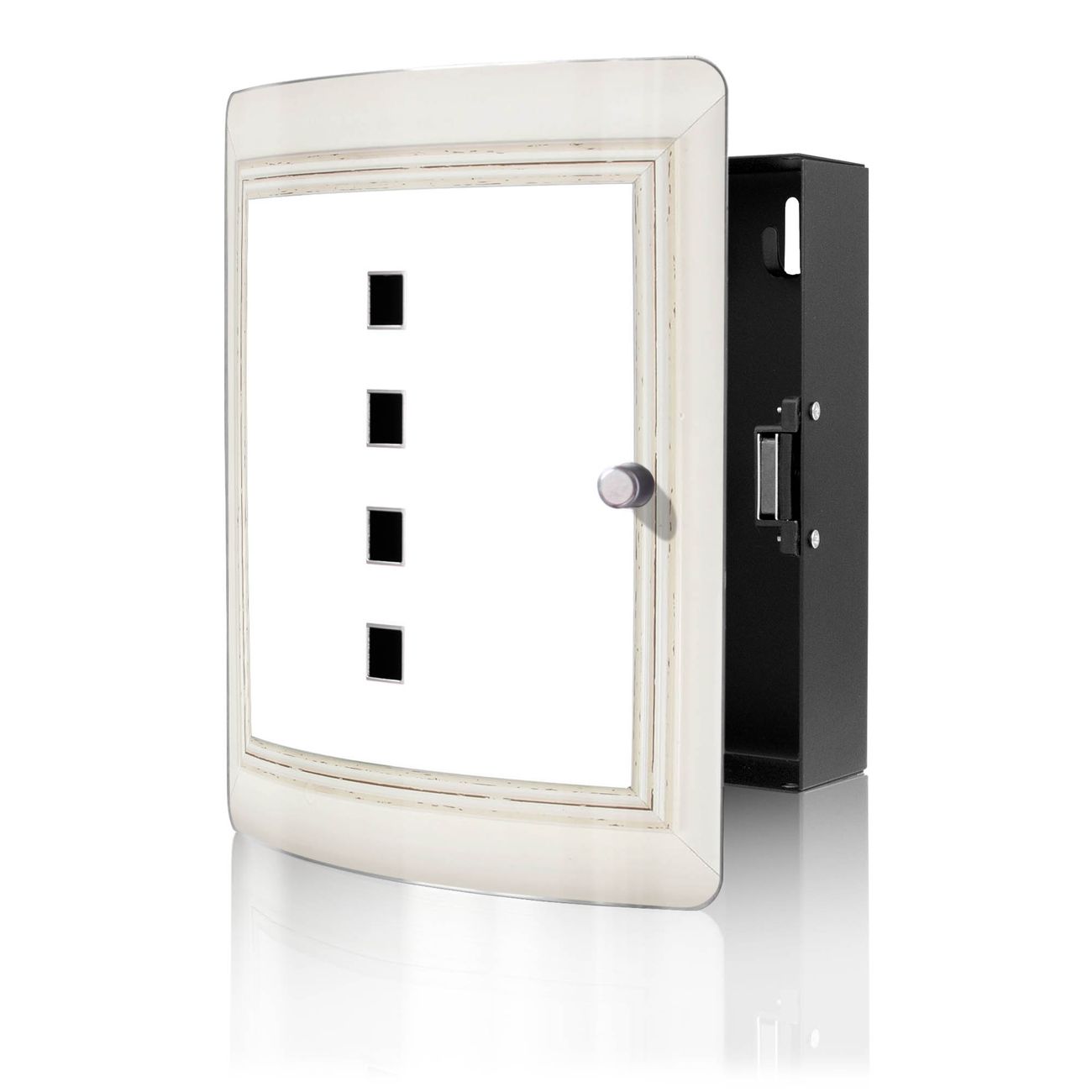 Funktion / Nutzen: Die leicht geschwungene Edelstahltür ist mit einer hochwertigen Motivfolie und dem Motiv Motiv Klassischer Holzrahmen kaschiert. Ein praktischer Magnetverschluss ermöglicht Ihnen ein schnelles Öffnen und Schließen. Befestigt wird der Schlüsselkasten an 2 Stellen auf der Rückseite, passendes Montagematerial fügen wir bereits bei.