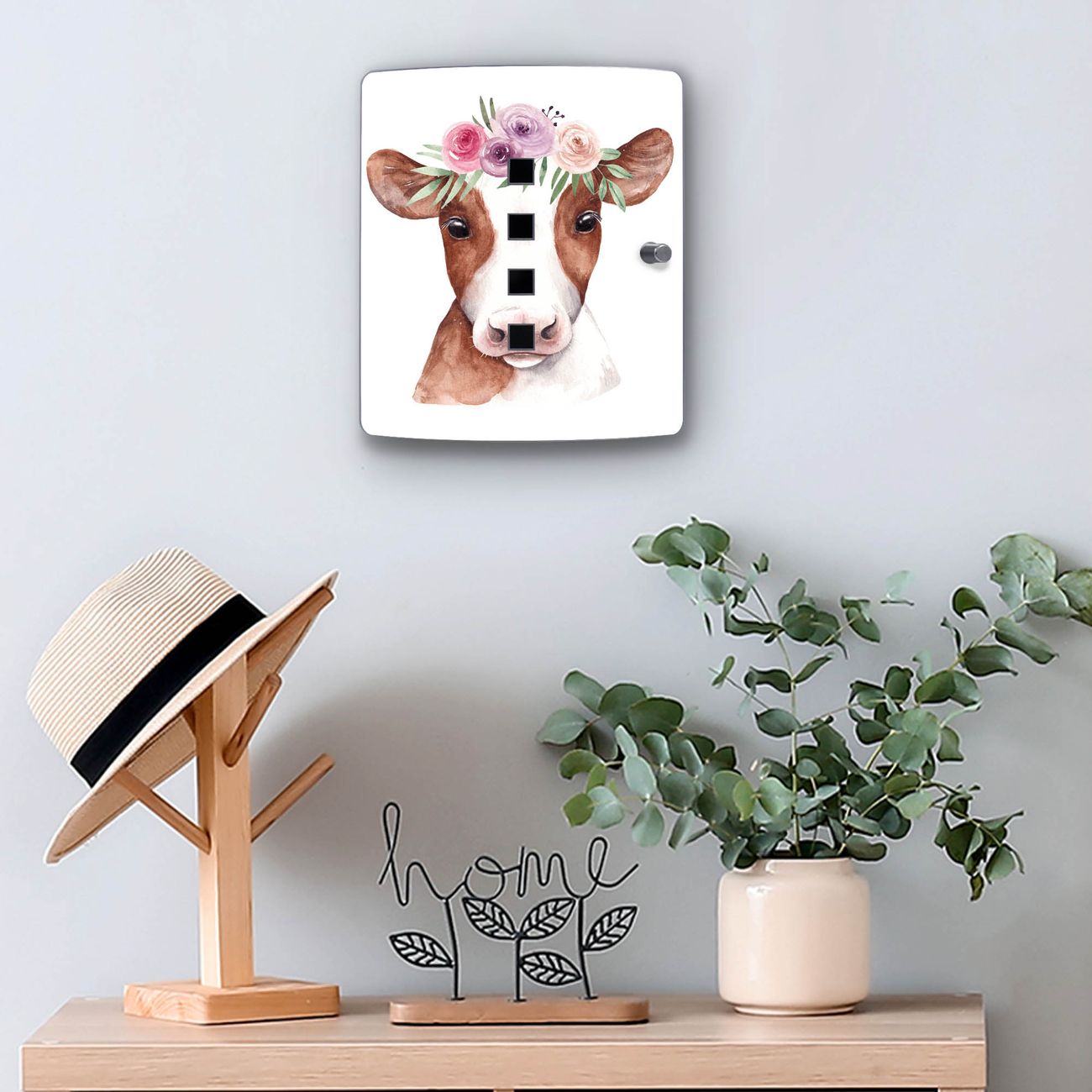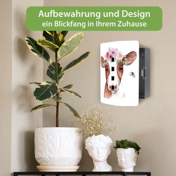 Schlüsselkasten Motiv Kuh mit Blumenkrone