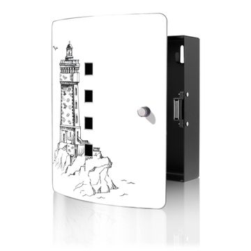 Funktion / Nutzen: Die leicht geschwungene Edelstahltür ist mit einer hochwertigen Motivfolie und dem Motiv Motiv Leuchtturm 8 kaschiert. Ein praktischer Magnetverschluss ermöglicht Ihnen ein schnelles Öffnen und Schließen. Befestigt wird der Schlüsselkasten an 2 Stellen auf der Rückseite, passendes Montagematerial fügen wir bereits bei.