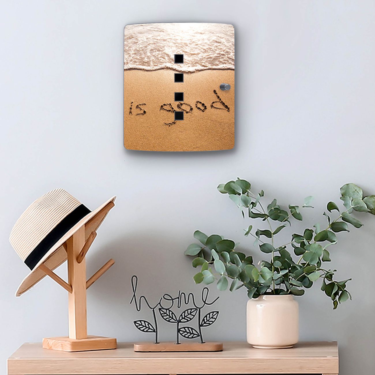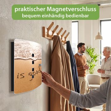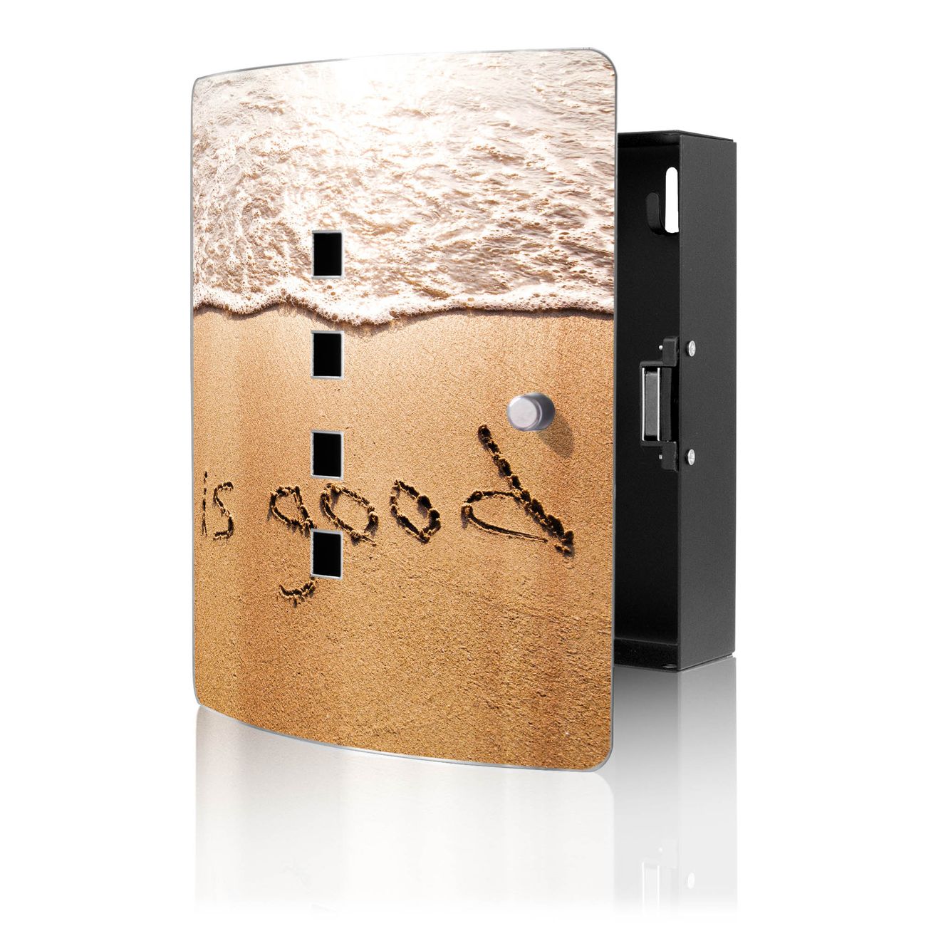 Funktion / Nutzen: Die leicht geschwungene Edelstahltür ist mit einer hochwertigen Motivfolie und dem Motiv Motiv Life Is Good kaschiert. Ein praktischer Magnetverschluss ermöglicht Ihnen ein schnelles Öffnen und Schließen. Befestigt wird der Schlüsselkasten an 2 Stellen auf der Rückseite, passendes Montagematerial fügen wir bereits bei.
