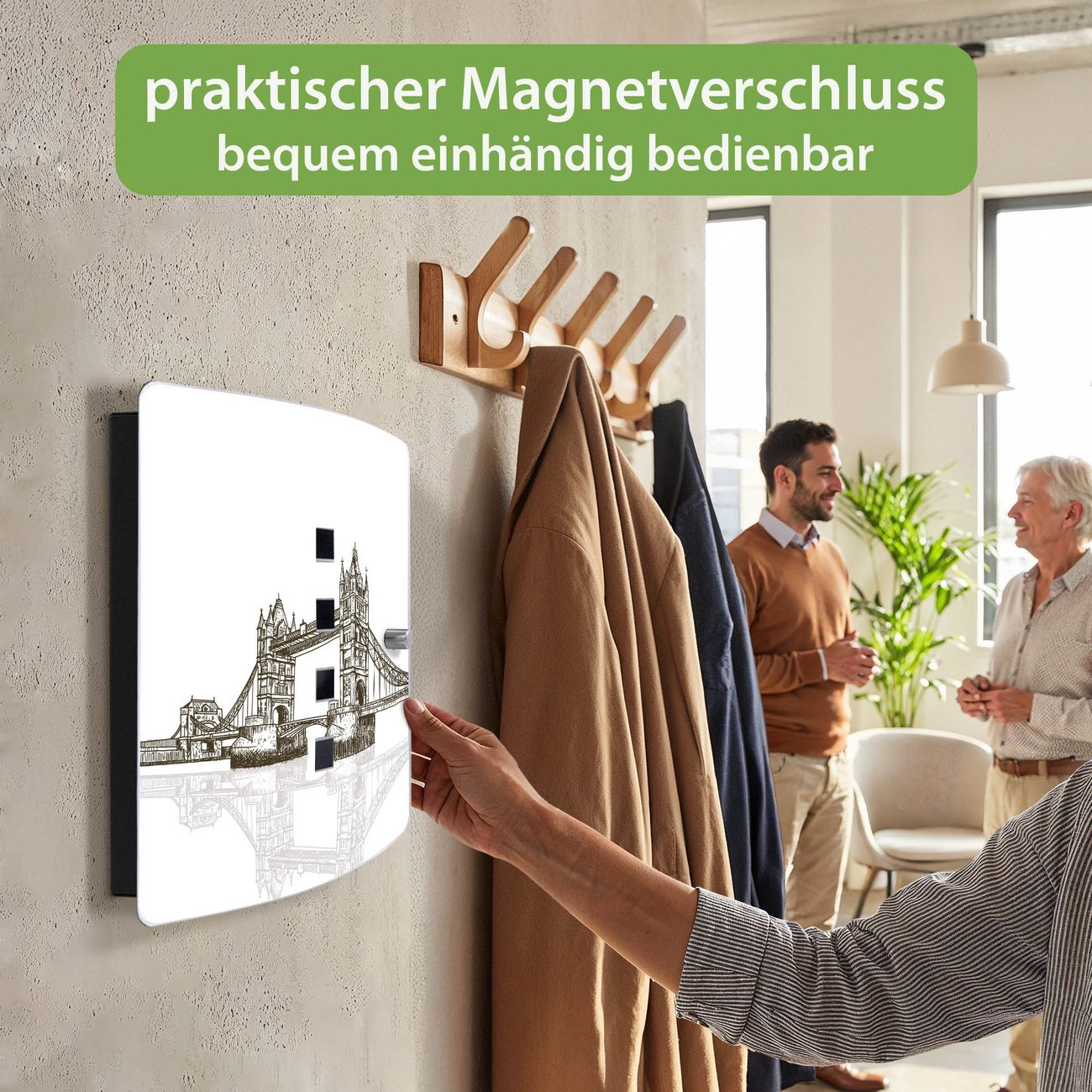Wir fertigen Ihren Schlüsselkasten von Hand, Sie erhalten keine preiswerte Importware. Viel Freude bei der neuen Schlüsselordnung wünscht das banjado-Team aus dem Herzen von Sachsen.