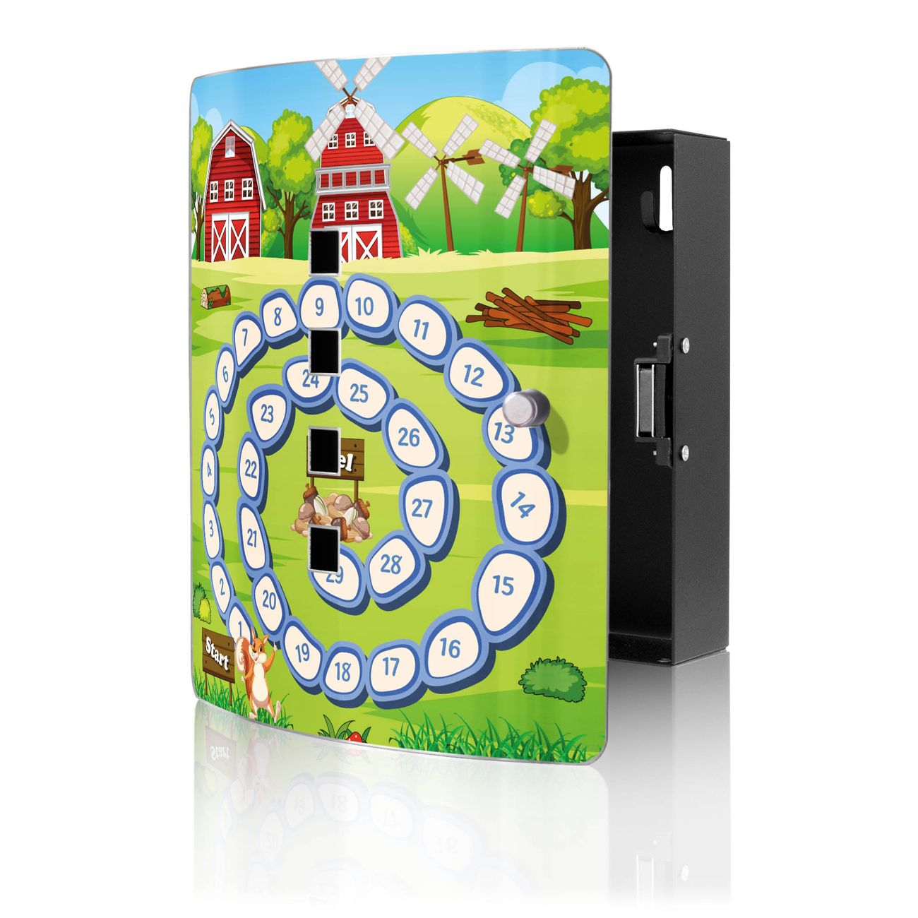 Funktion / Nutzen: Die leicht geschwungene Edelstahltür ist mit einer hochwertigen Motivfolie und dem Motiv Motiv Spielbrett 7 kaschiert. Ein praktischer Magnetverschluss ermöglicht Ihnen ein schnelles Öffnen und Schließen. Befestigt wird der Schlüsselkasten an 2 Stellen auf der Rückseite, passendes Montagematerial fügen wir bereits bei.