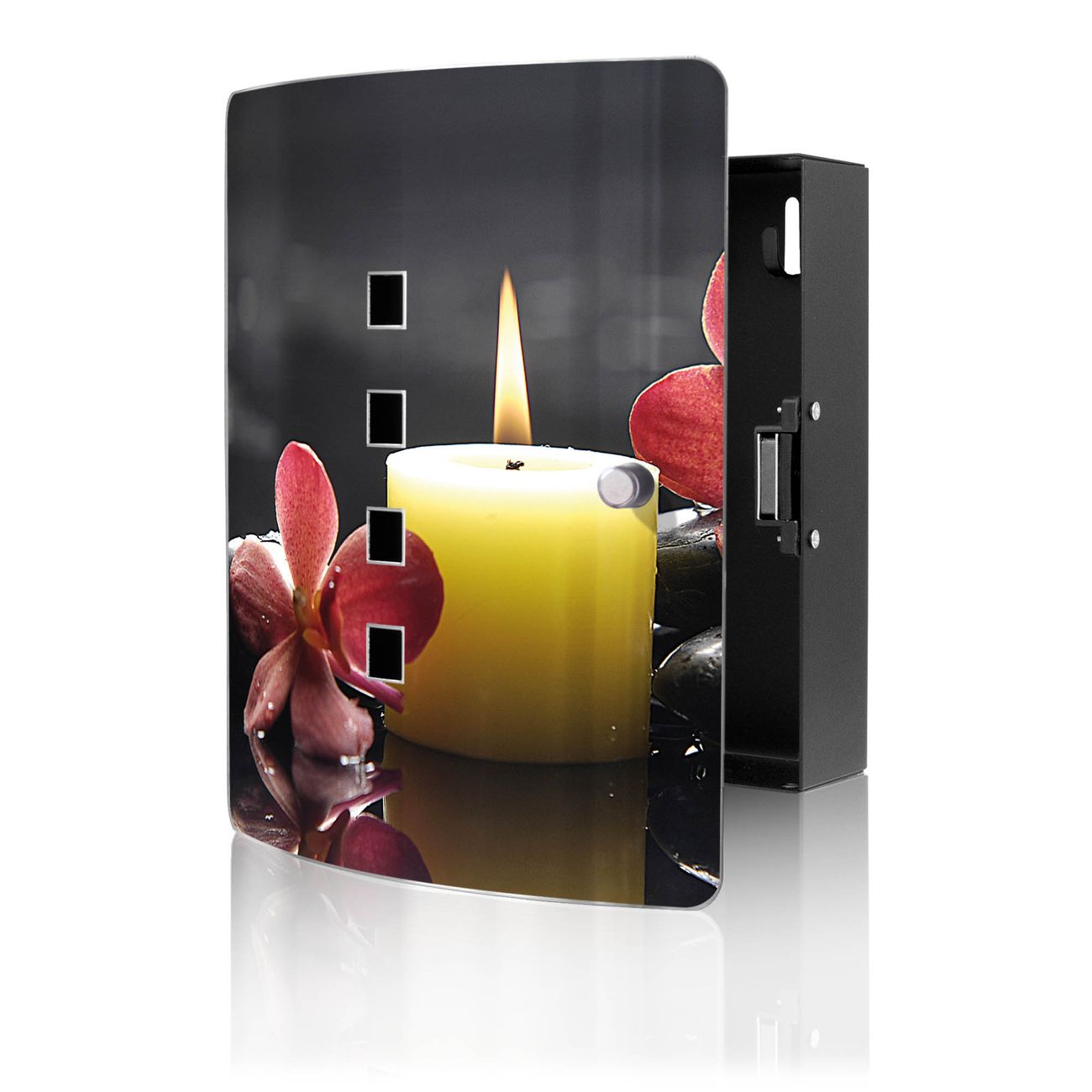 Funktion / Nutzen: Die leicht geschwungene Edelstahltür ist mit einer hochwertigen Motivfolie und dem Motiv Motiv Steine & Relax 5 kaschiert. Ein praktischer Magnetverschluss ermöglicht Ihnen ein schnelles Öffnen und Schließen. Befestigt wird der Schlüsselkasten an 2 Stellen auf der Rückseite, passendes Montagematerial fügen wir bereits bei.