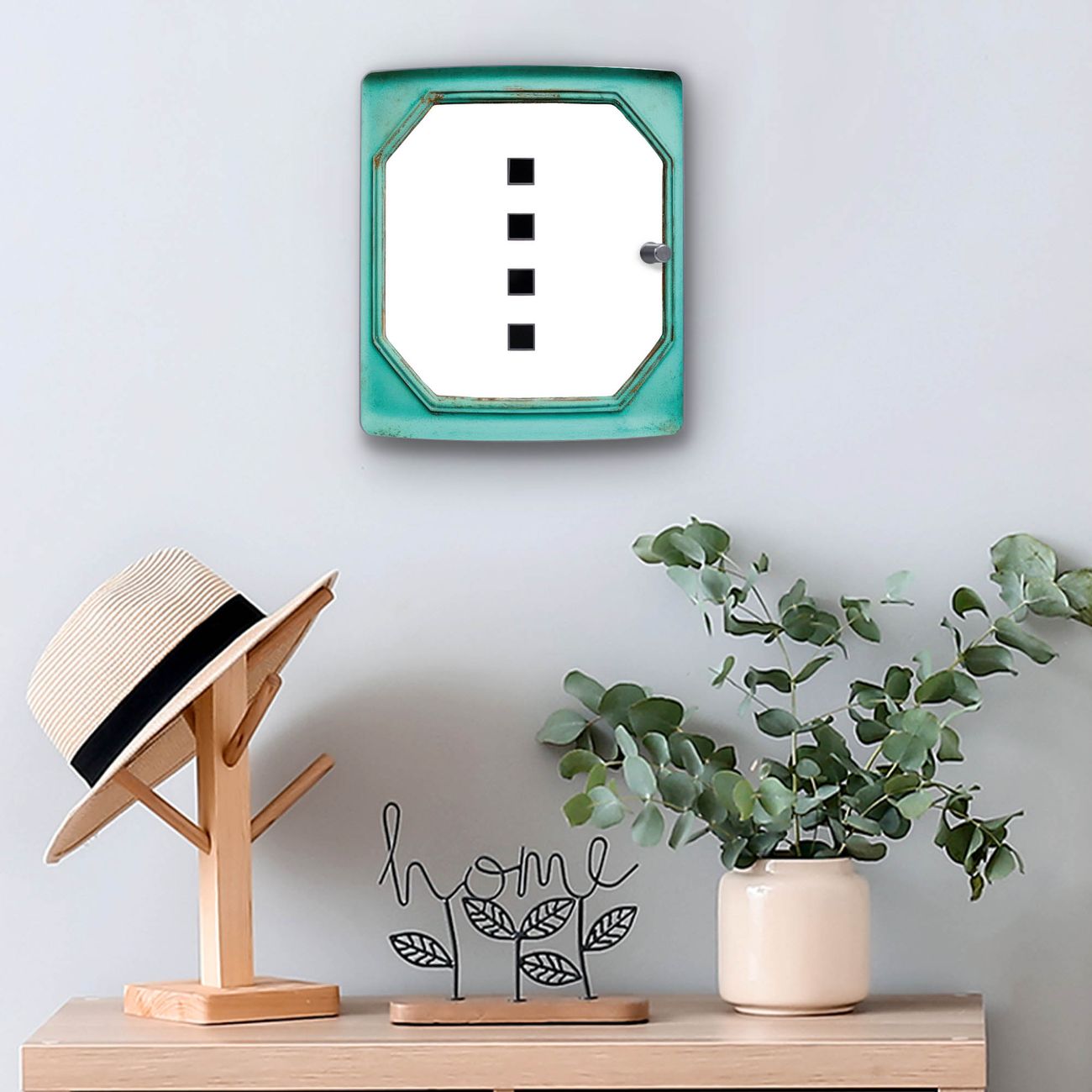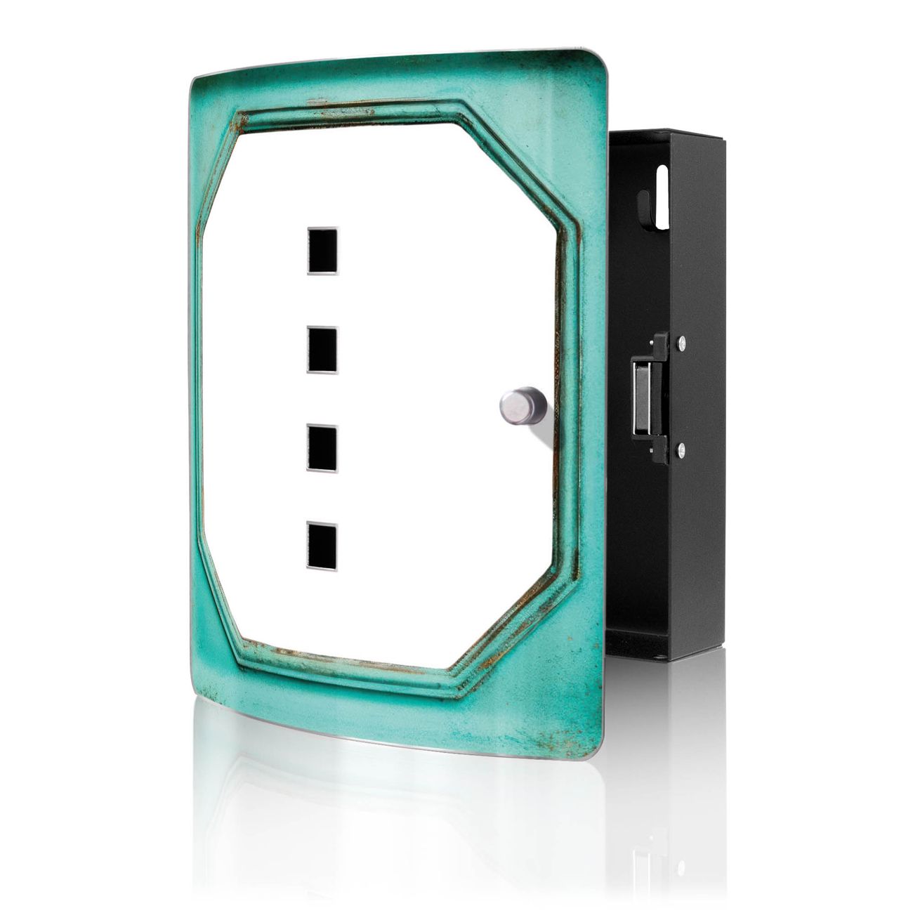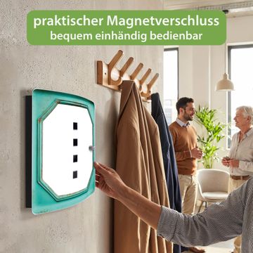 Funktion / Nutzen: Die leicht geschwungene Edelstahltür ist mit einer hochwertigen Motivfolie und dem Motiv Motiv Vintage Metallrahmen kaschiert. Ein praktischer Magnetverschluss ermöglicht Ihnen ein schnelles Öffnen und Schließen. Befestigt wird der Schlüsselkasten an 2 Stellen auf der Rückseite, passendes Montagematerial fügen wir bereits bei.