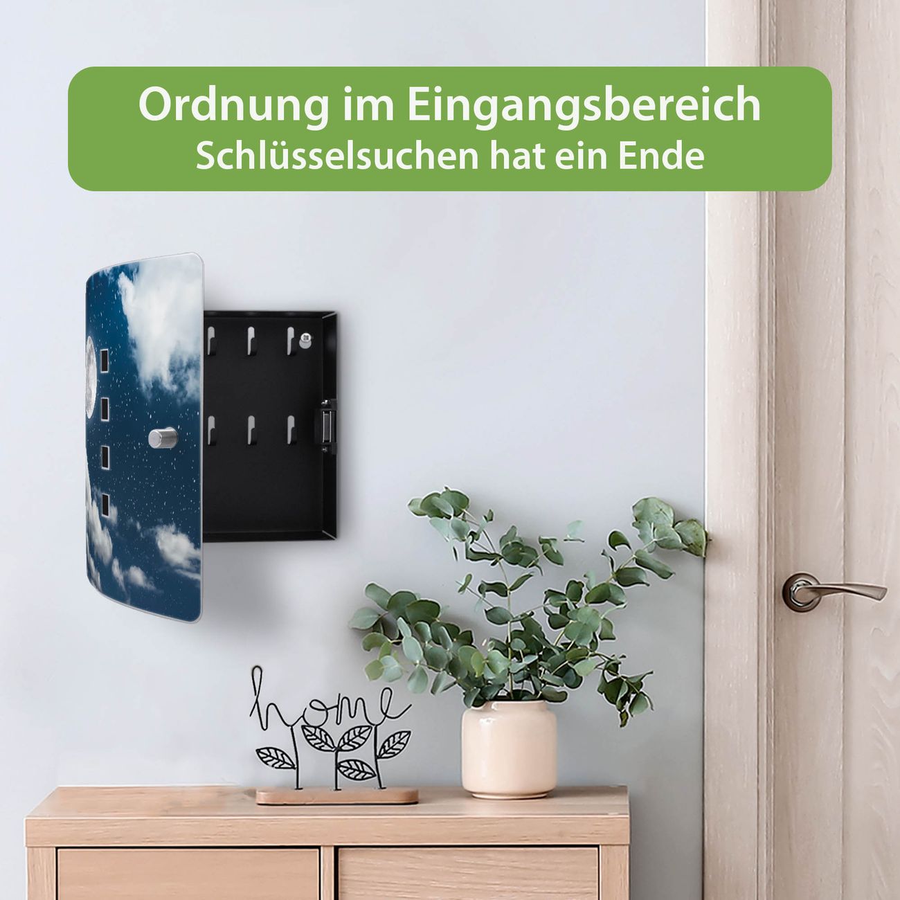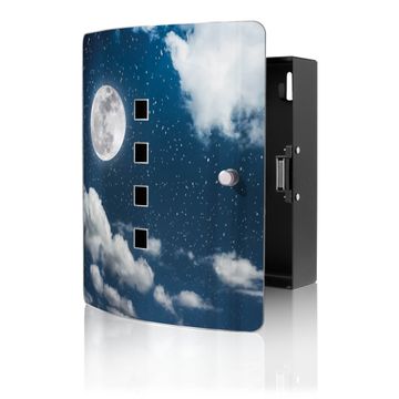 Funktion / Nutzen: Die leicht geschwungene Edelstahltür ist mit einer hochwertigen Motivfolie und dem Motiv Motiv Vollmond 3 kaschiert. Ein praktischer Magnetverschluss ermöglicht Ihnen ein schnelles Öffnen und Schließen. Befestigt wird der Schlüsselkasten an 2 Stellen auf der Rückseite, passendes Montagematerial fügen wir bereits bei.