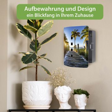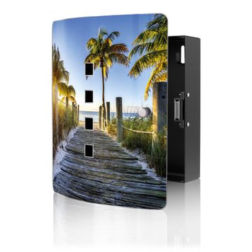 Funktion / Nutzen: Die leicht geschwungene Edelstahltür ist mit einer hochwertigen Motivfolie und dem Motiv Motiv Weg zum Strand kaschiert. Ein praktischer Magnetverschluss ermöglicht Ihnen ein schnelles Öffnen und Schließen. Befestigt wird der Schlüsselkasten an 2 Stellen auf der Rückseite, passendes Montagematerial fügen wir bereits bei.