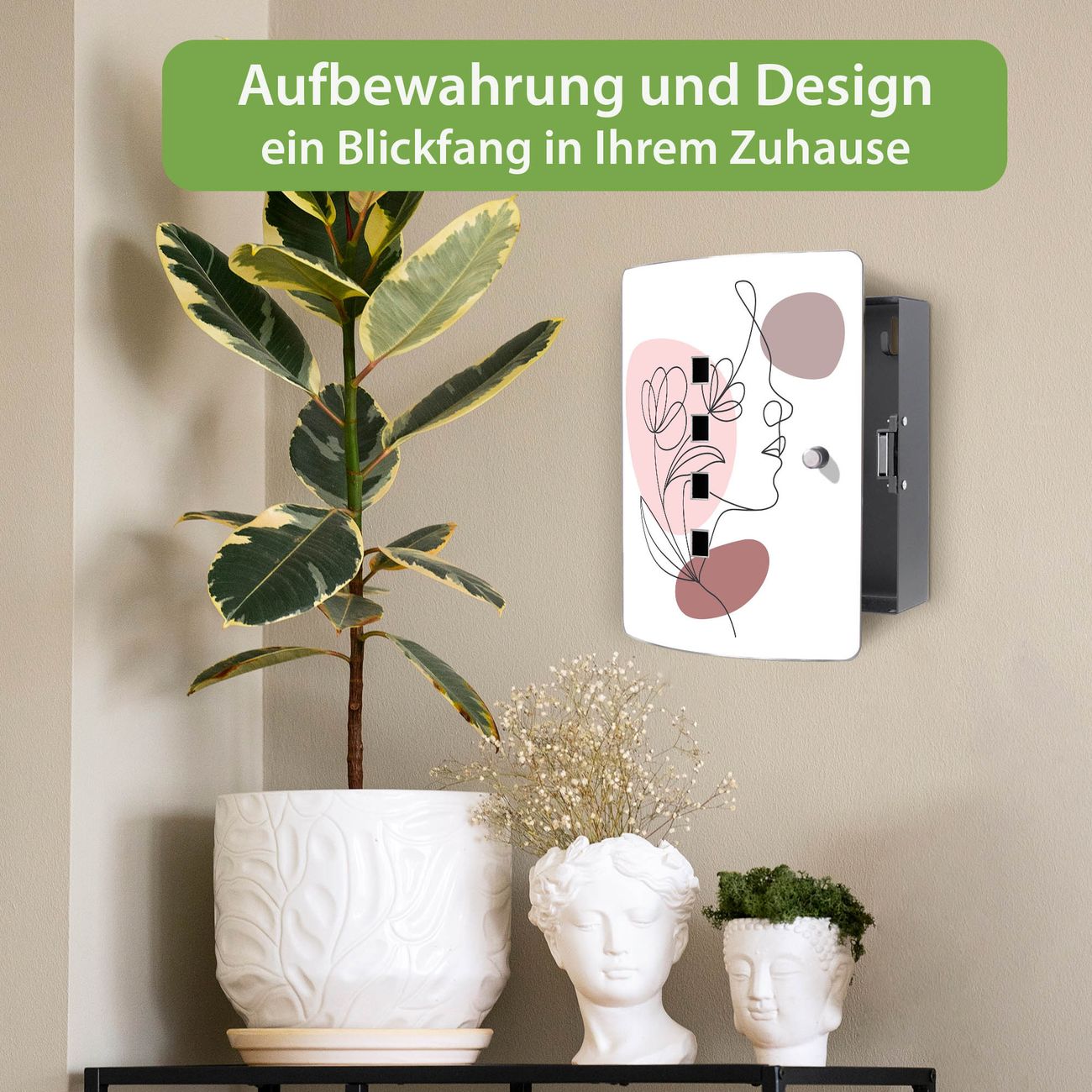 Funktion / Nutzen: Die leicht geschwungene Edelstahltür ist mit einer hochwertigen Motivfolie und dem Motiv Motiv Weibliche Lineart kaschiert. Ein praktischer Magnetverschluss ermöglicht Ihnen ein schnelles Öffnen und Schließen. Befestigt wird der Schlüsselkasten an 2 Stellen auf der Rückseite, passendes Montagematerial fügen wir bereits bei.
