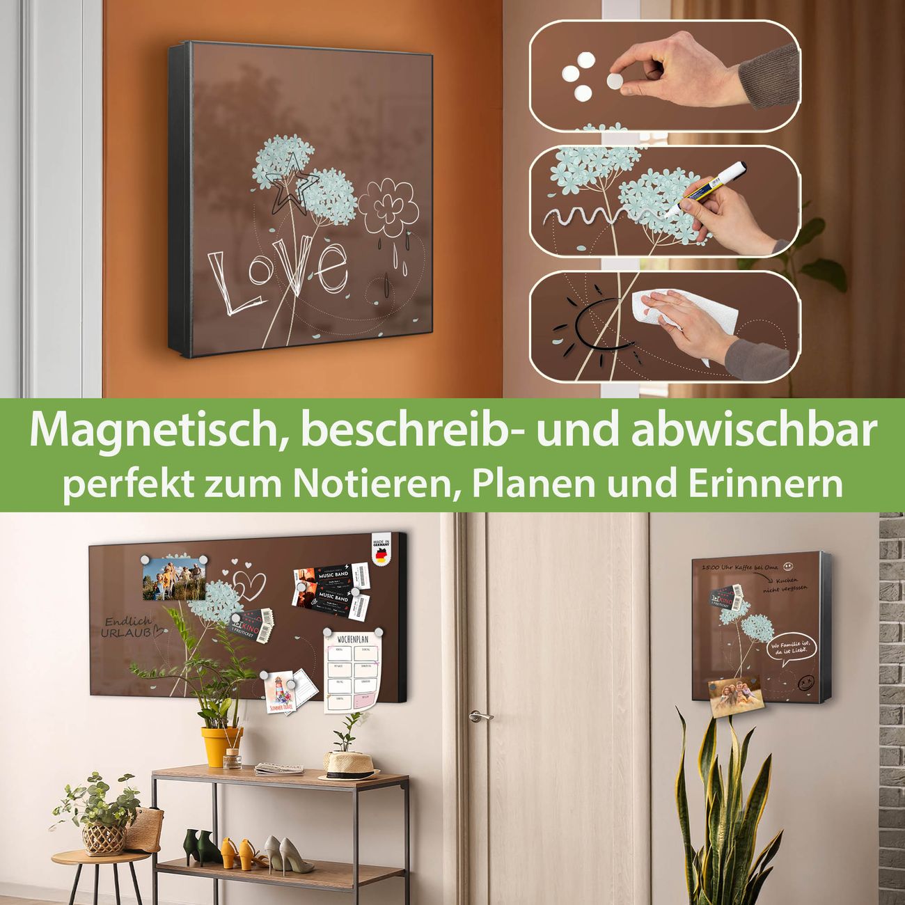 ✅ Magnetisch und mit Kreidestift beschreibbar, rechts angeschlagene TürOrdnung und Design in einem