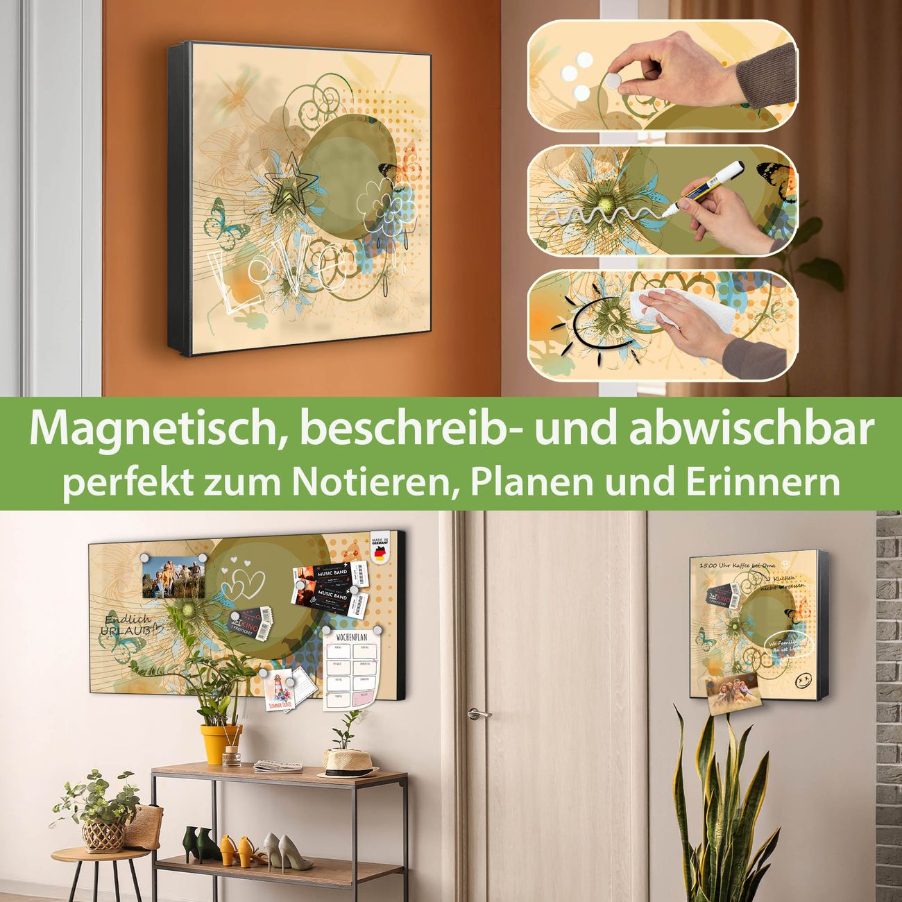Bringe Ordnung und Eleganz in deinen Eingangsbereich mit dem banjado Schlüsselkasten Motiv Motiv WT Flora Und Fauna. Die moderne Schlüsselbox kombiniert funktionales Design mit hochwertiger Verarbeitung und wird so zu einem echten Hingucker in Flur, Büro oder Ferienwohnung. ✅ Stilvolle Schlüsselaufbewahrung mit Motiv Motiv WT Flora Und Fauna Der Design-Schlüsselkasten Motiv Motiv WT Flora Und Fauna bietet Platz für bis zu 32 Schlüssel, die auf 4 stabilen Reihen mit je 8 Haken übersichtlich verstaut werden. Mit seinen kompakten Maßen von 30 x 30 x 5 cm passt die Schlüsselbox perfekt auch in kleinere Räume. Der schwarz lackierte Stahlkorpus mit rechts angeschlagenem Türscharnier harmoniert mit gedruckten Folie auf der Front und fügt sich nahtlos in jedes Wohnambiente ein. Ob als Schlüsselorganizer für Zuhause oder als praktische Lösung für Büros, Praxen und Gewerbe, der banjado Schlüsselkasten sorgt für Ordnung und Übersicht. Dank der magnetischen, mit Kreidestiften beschreibbaren Folie auf der Front kannst du Notizen anheften oder Termine direkt auf der Oberfläche festhalten. Die Schlüsselbox Motiv Motiv WT Flora Und Fauna zur Wandmontage wird inklusive Befestigungsmaterial geliefert und ist schnell angebracht. So hast du deine Schlüssel jederzeit griffbereit und zugleich stilvoll verstaut. Mit diesem banjado Schlüsselkasten Motiv Motiv WT Flora Und Fauna kombinierst du praktische Aufbewahrung mit stilvollem Wohndesign. Ob privat oder geschäftlich, die Schlüsselbox sorgt für mehr Ordnung, Übersicht und ein wohnliches Ambiente.Vorteile im Überblick