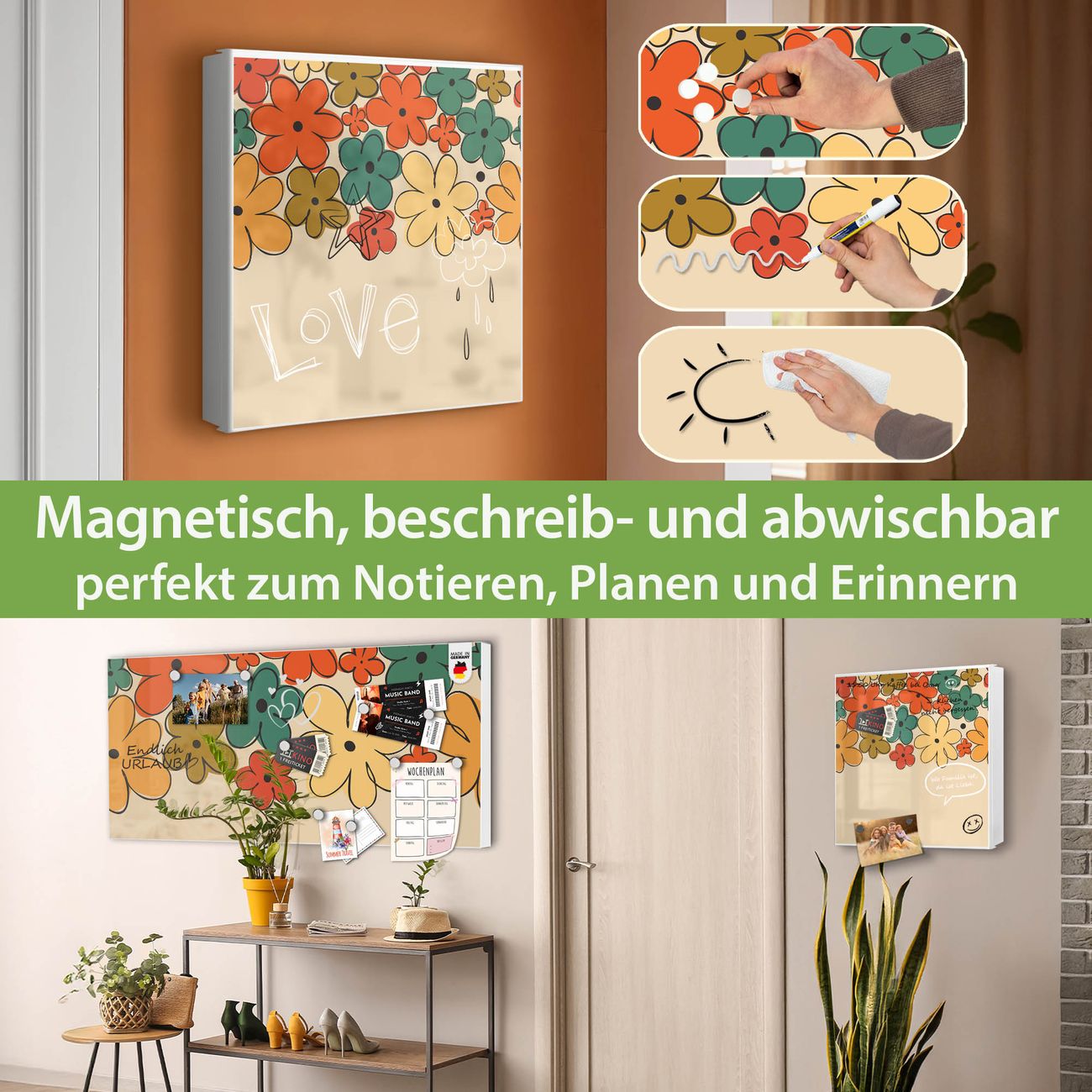 Bringe Ordnung und Eleganz in deinen Eingangsbereich mit dem banjado Schlüsselkasten Motiv Motiv WT Gemalte Blumen. Die moderne Schlüsselbox kombiniert funktionales Design mit hochwertiger Verarbeitung und wird so zu einem echten Hingucker in Flur, Büro oder Ferienwohnung. ✅ Stilvolle Schlüsselaufbewahrung mit Motiv Motiv WT Gemalte Blumen Der Design-Schlüsselkasten Motiv Motiv WT Gemalte Blumen bietet Platz für bis zu 32 Schlüssel, die auf 4 stabilen Reihen mit je 8 Haken übersichtlich verstaut werden. Mit seinen kompakten Maßen von 30 x 30 x 5 cm passt die Schlüsselbox perfekt auch in kleinere Räume. Der weiß lackierte Stahlkorpus mit rechts angeschlagenem Türscharnier harmoniert mit gedruckten Folie auf der Front und fügt sich nahtlos in jedes Wohnambiente ein. Ob als Schlüsselorganizer für Zuhause oder als praktische Lösung für Büros, Praxen und Gewerbe, der banjado Schlüsselkasten sorgt für Ordnung und Übersicht. Dank der magnetischen, mit Kreidestiften beschreibbaren Folie auf der Front kannst du Notizen anheften oder Termine direkt auf der Oberfläche festhalten. Die Schlüsselbox Motiv Motiv WT Gemalte Blumen zur Wandmontage wird inklusive Befestigungsmaterial geliefert und ist schnell angebracht. So hast du deine Schlüssel jederzeit griffbereit und zugleich stilvoll verstaut. Mit diesem banjado Schlüsselkasten Motiv Motiv WT Gemalte Blumen kombinierst du praktische Aufbewahrung mit stilvollem Wohndesign. Ob privat oder geschäftlich, die Schlüsselbox sorgt für mehr Ordnung, Übersicht und ein wohnliches Ambiente.Vorteile im Überblick