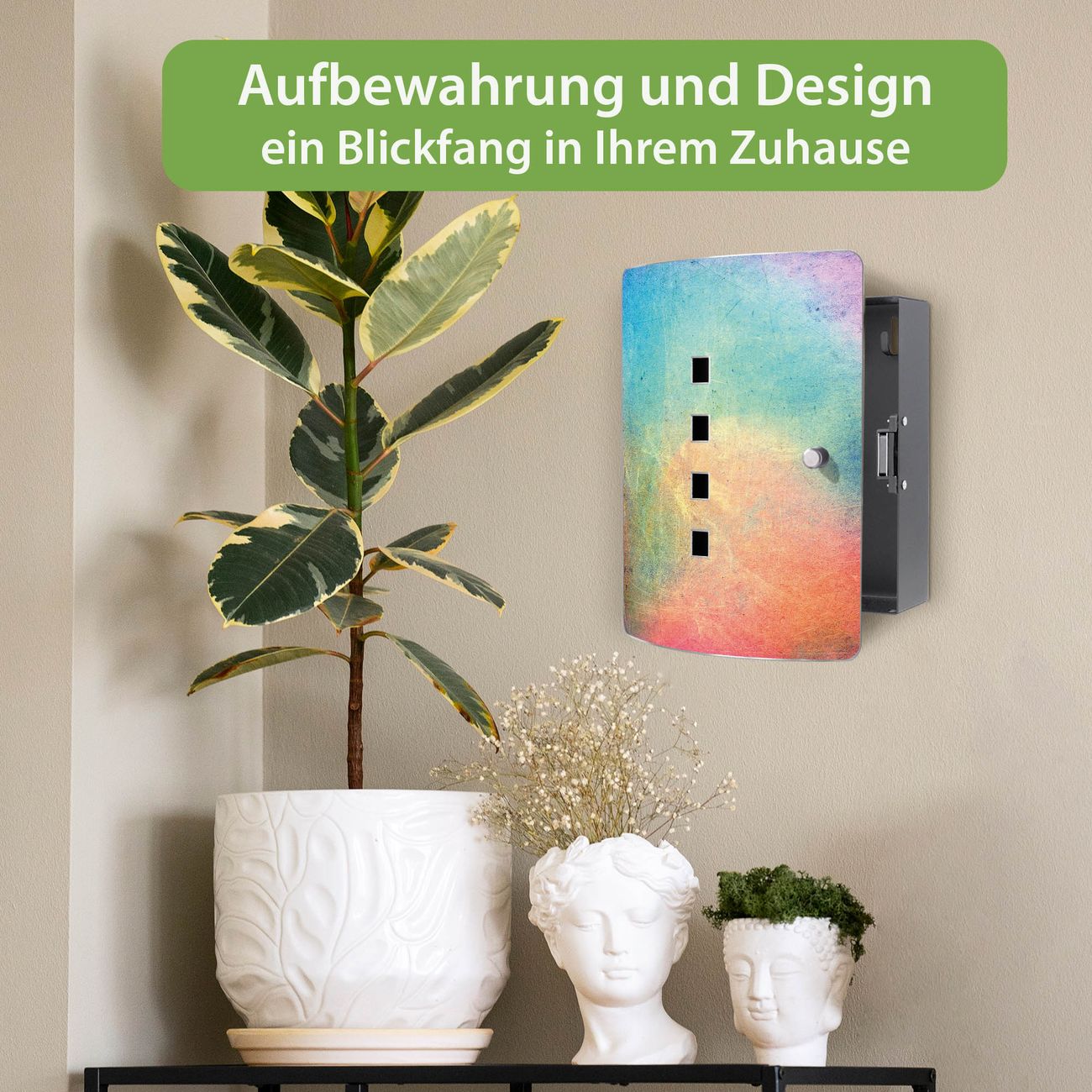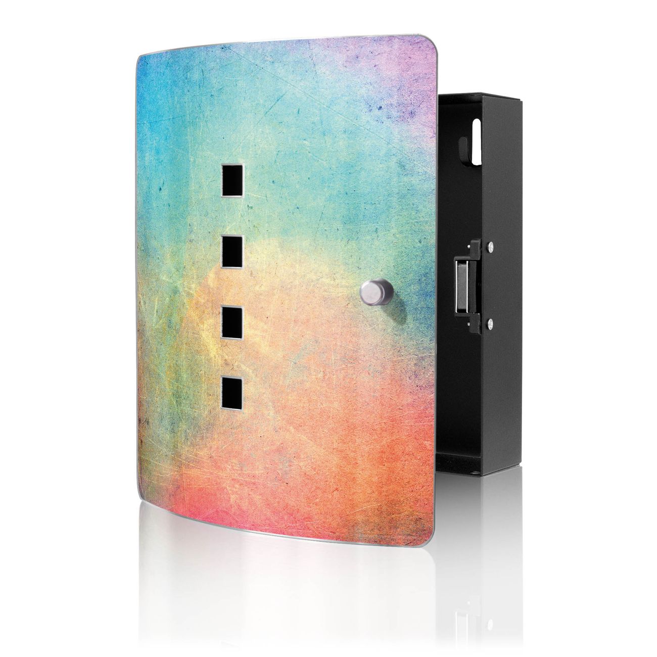 Funktion / Nutzen: Die leicht geschwungene Edelstahltür ist mit einer hochwertigen Motivfolie und dem Motiv Motiv Zerkratzt 2 kaschiert. Ein praktischer Magnetverschluss ermöglicht Ihnen ein schnelles Öffnen und Schließen. Befestigt wird der Schlüsselkasten an 2 Stellen auf der Rückseite, passendes Montagematerial fügen wir bereits bei.