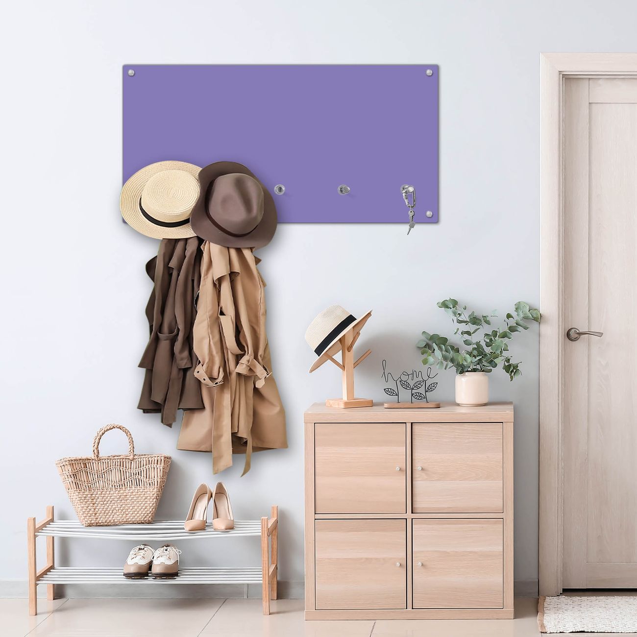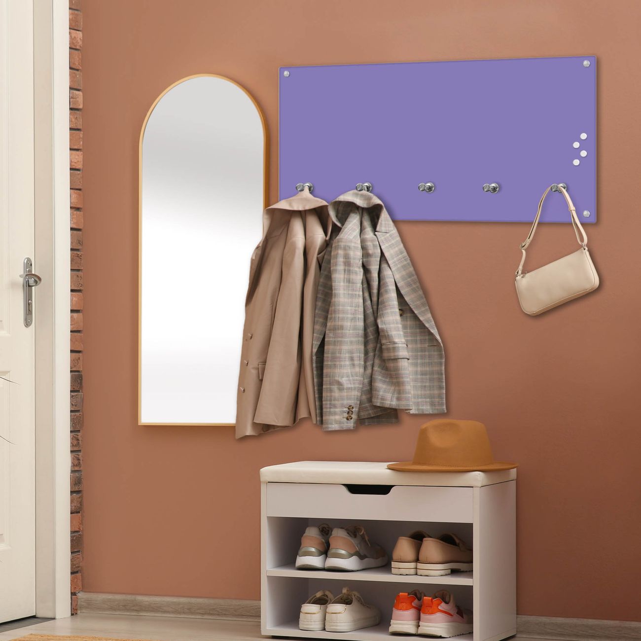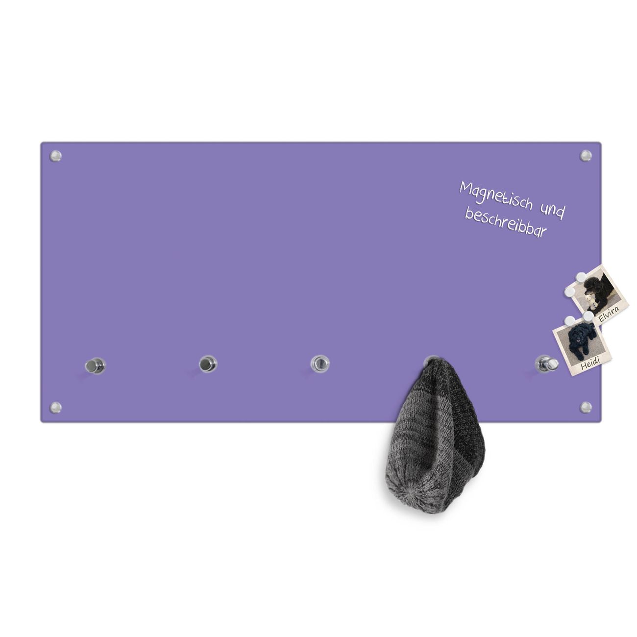 Bitte beachten Sie, dass an dieser Garderobe nur starke Neodym-Magnete halten! FUNKTION: Die banjado Wandgarderobe mit Farbe Lavendel ist Ihr täglicher Begleiter. Zuverlässig hängen hier Ihre Jacken und Mäntel griffbereit. Gleichzeitig ist die Design Garderobe magnetisch, Sie können Notizen anheften und durch das Echtglas ist Ihr Paneel auch beschreibbar und wieder abwischbar. DESIGN: Sie erhalten eine Garderobenleiste aus elegantem Echtglas mit dem Farbbrillanten Farbe Lavendel hinterklebt. Das Design ist zeitlos klassisch, ohne dabei auf Funktionalität zu verzichten. Suchen Sie aus einer Vielzahl von Farbeen das für Ihre Einrichtung Passende aus. DETAILS: Die Flurgarderobe besteht aus 4mm gehärtetem Sicherheitsglas. Sie ist 80cm breit, 40cm hoch und 6cm tief. Die Garderobenhaken zur Selbstmontage präsentieren sich in Edelstahl-Optik, ebenso die Abstandshalter für die Wandmontage. Ihre neue Garderobe ist sofort einsatzbereit. NUTZEN: Ihre neue Garderobe hält nicht nur zuverlässig Ihre Kleidung, sie ist auch optisch ein Blickfang. Durch die magnetische Wirkung können Sie mit 4 beigefügten extrastarken Neodym-Magneten Notizen anheften und mit wasserlöslichen Kreidestiften oder Whiteboard-Markern auch Nachrichten hinterlassen. BANJADO: Wir sind ein kleines kreatives Team aus Sachsen und entwickeln Produkte die Design und Funktionalität verbinden sollen. Viel Freude mit Ihrer neuen Garderobe wünscht das banjado-Team!