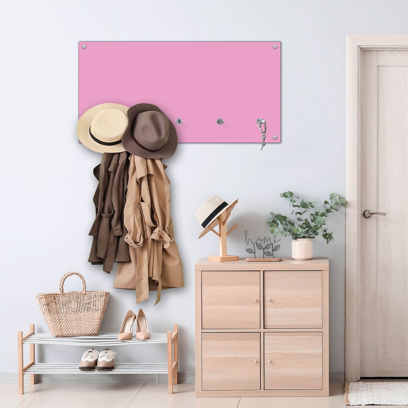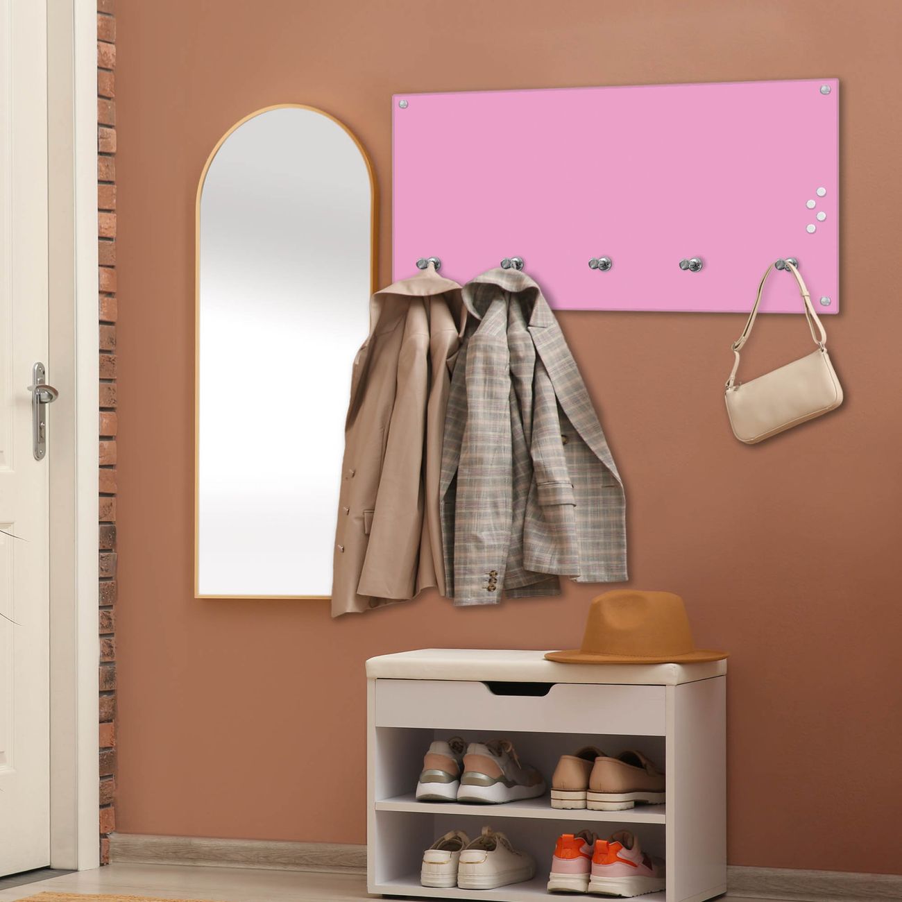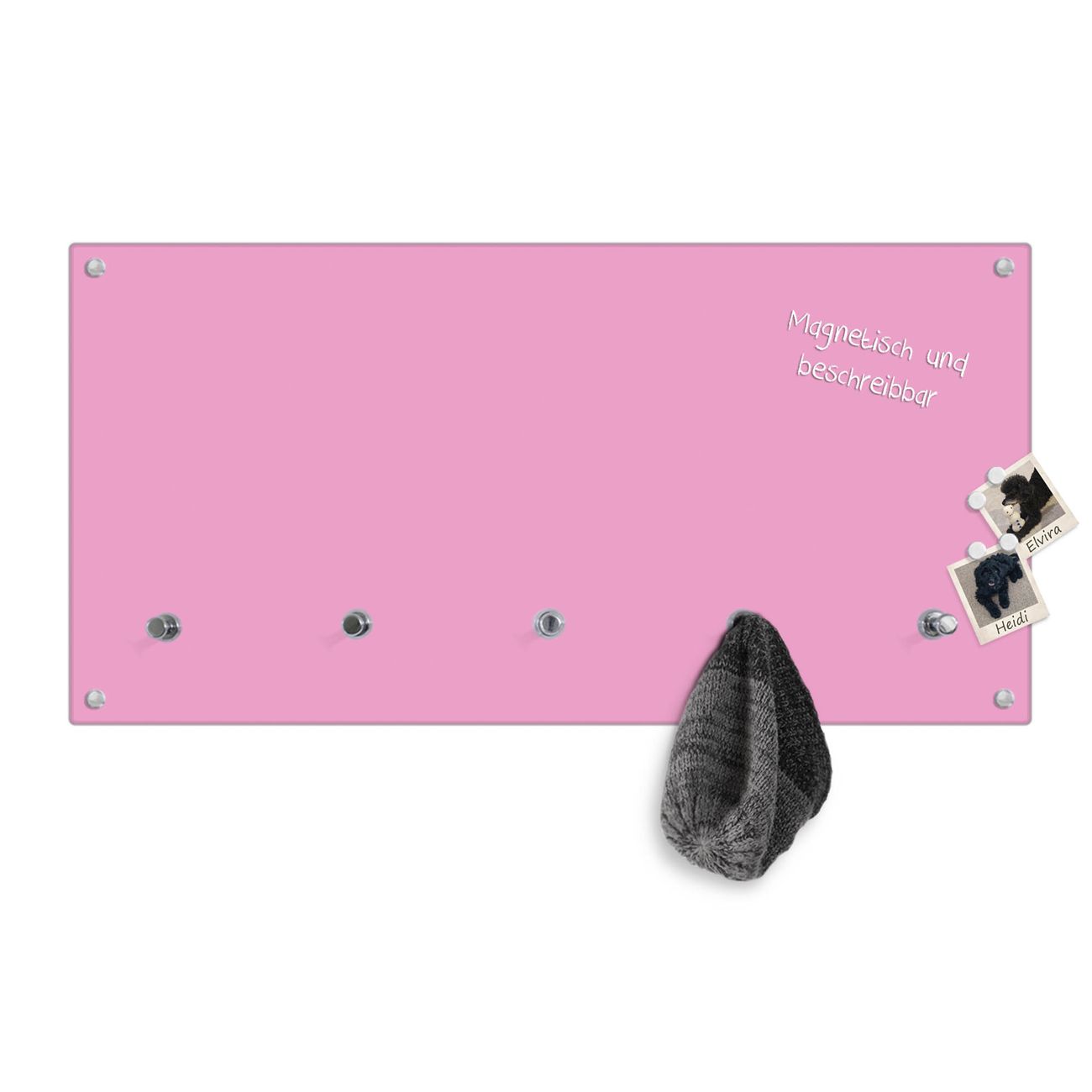 Bitte beachten Sie, dass an dieser Garderobe nur starke Neodym-Magnete halten! FUNKTION: Die banjado Wandgarderobe mit Farbe Rose ist Ihr täglicher Begleiter. Zuverlässig hängen hier Ihre Jacken und Mäntel griffbereit. Gleichzeitig ist die Design Garderobe magnetisch, Sie können Notizen anheften und durch das Echtglas ist Ihr Paneel auch beschreibbar und wieder abwischbar. DESIGN: Sie erhalten eine Garderobenleiste aus elegantem Echtglas mit dem Farbbrillanten Farbe Rose hinterklebt. Das Design ist zeitlos klassisch, ohne dabei auf Funktionalität zu verzichten. Suchen Sie aus einer Vielzahl von Farbeen das für Ihre Einrichtung Passende aus. DETAILS: Die Flurgarderobe besteht aus 4mm gehärtetem Sicherheitsglas. Sie ist 80cm breit, 40cm hoch und 6cm tief. Die Garderobenhaken zur Selbstmontage präsentieren sich in Edelstahl-Optik, ebenso die Abstandshalter für die Wandmontage. Ihre neue Garderobe ist sofort einsatzbereit. NUTZEN: Ihre neue Garderobe hält nicht nur zuverlässig Ihre Kleidung, sie ist auch optisch ein Blickfang. Durch die magnetische Wirkung können Sie mit 4 beigefügten extrastarken Neodym-Magneten Notizen anheften und mit wasserlöslichen Kreidestiften oder Whiteboard-Markern auch Nachrichten hinterlassen. BANJADO: Wir sind ein kleines kreatives Team aus Sachsen und entwickeln Produkte die Design und Funktionalität verbinden sollen. Viel Freude mit Ihrer neuen Garderobe wünscht das banjado-Team!