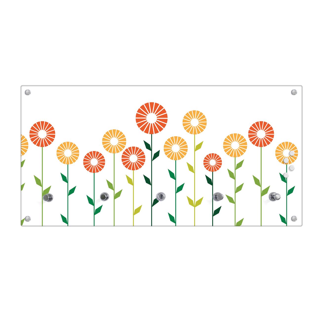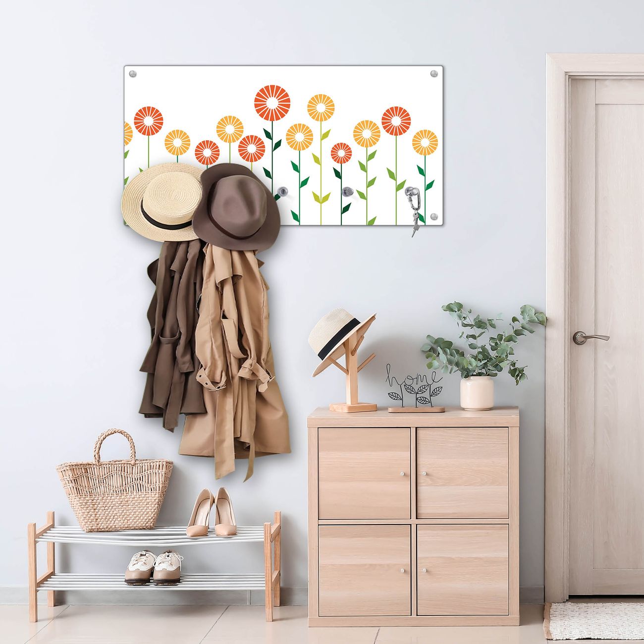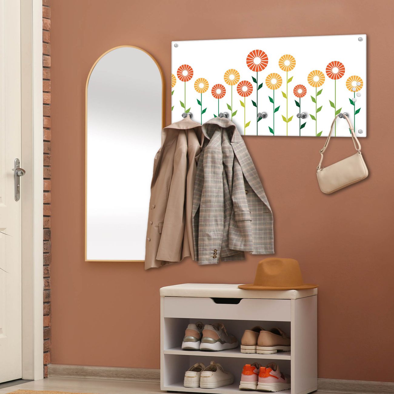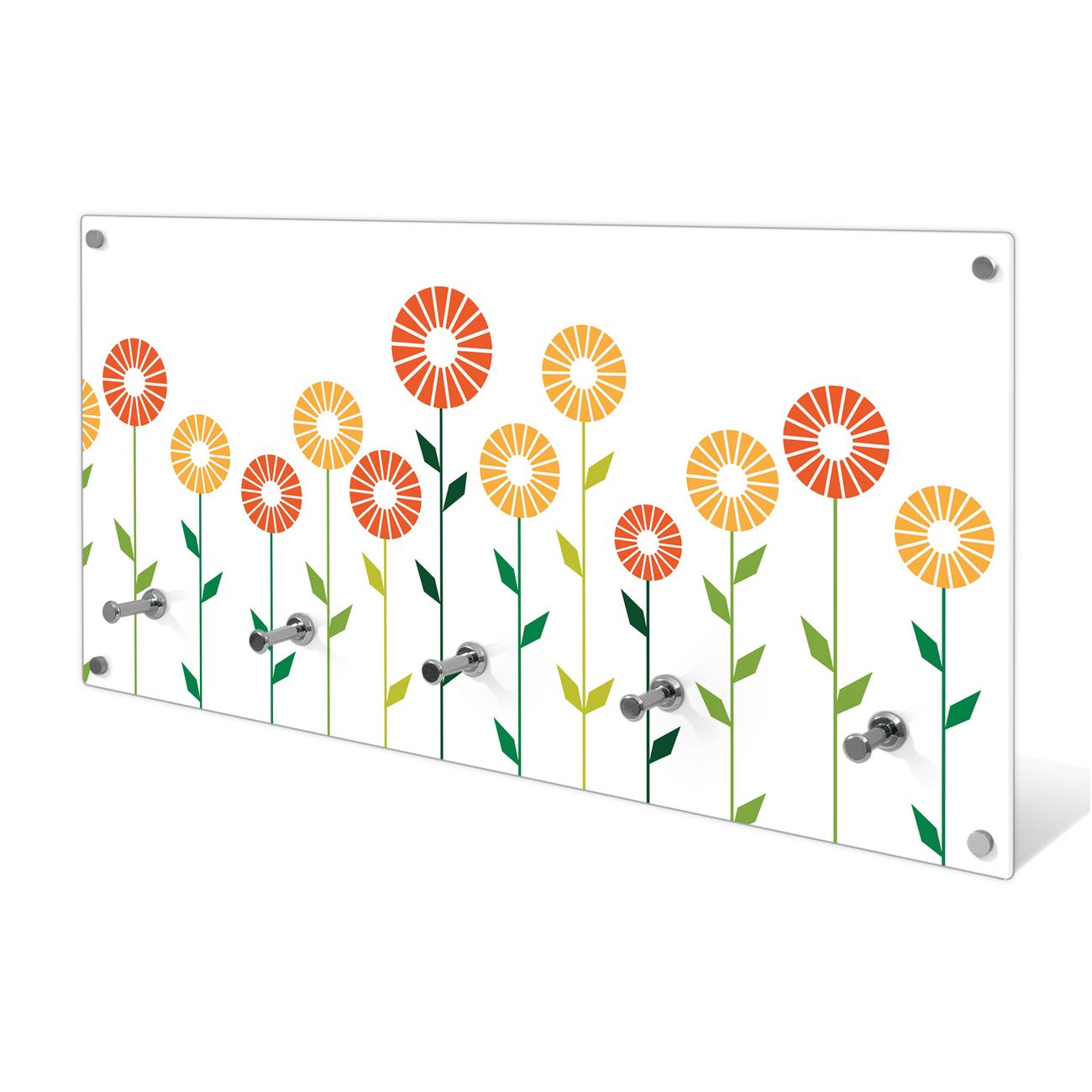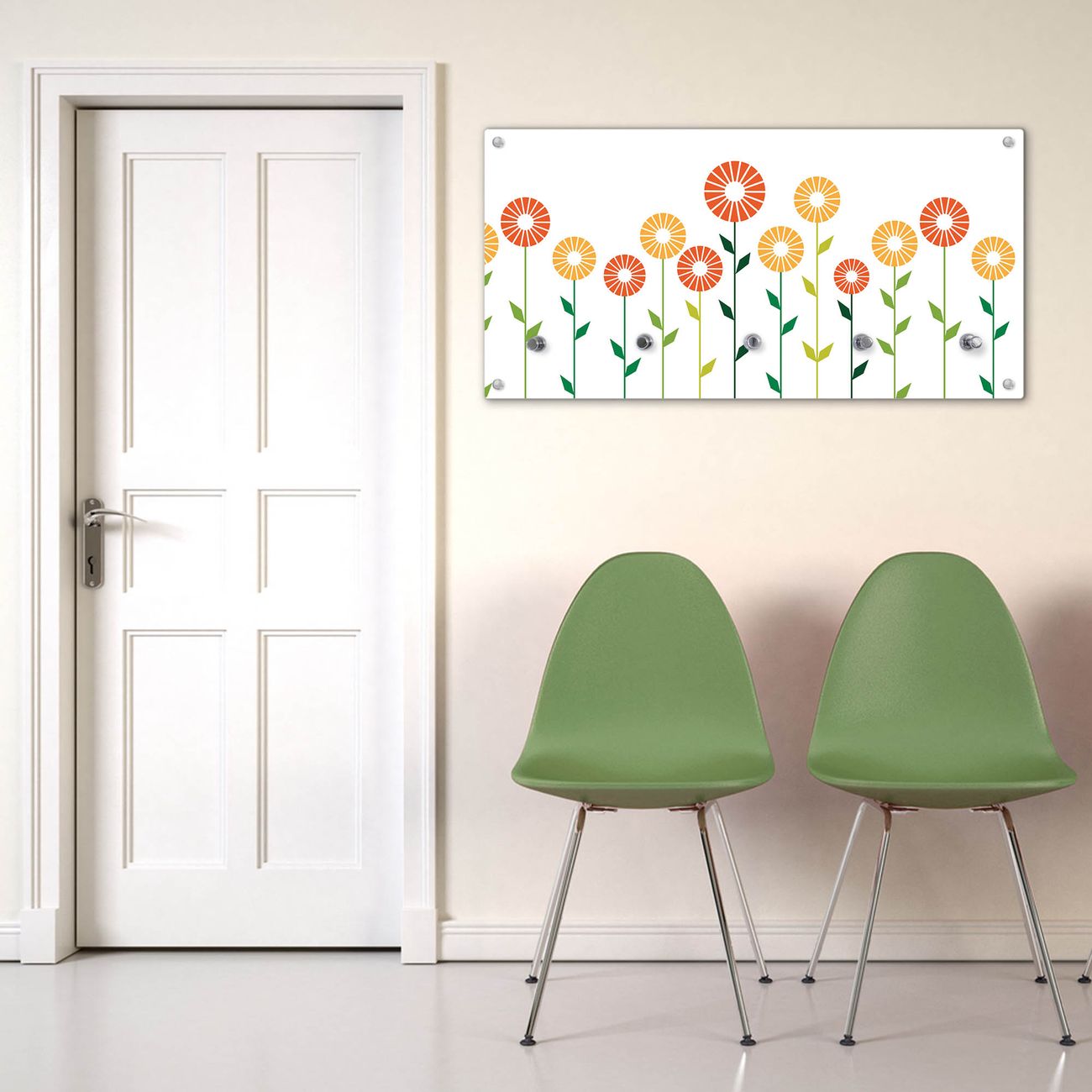 Wandgarderobe Glas 80x40cm Motiv Abstrakte Margeriten