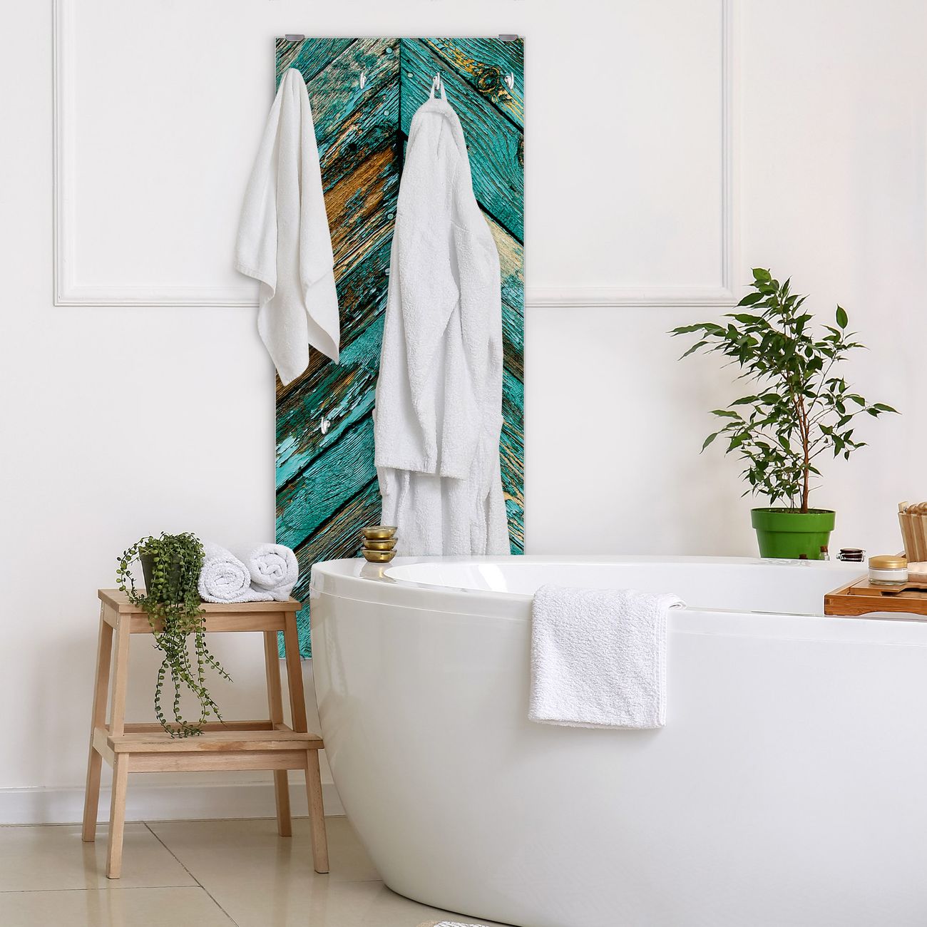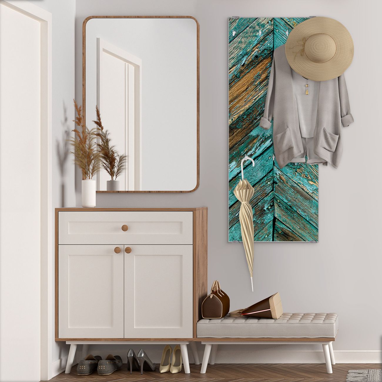 Flurgarderobe Glas 50x125cm Motiv Altes Holz Blau