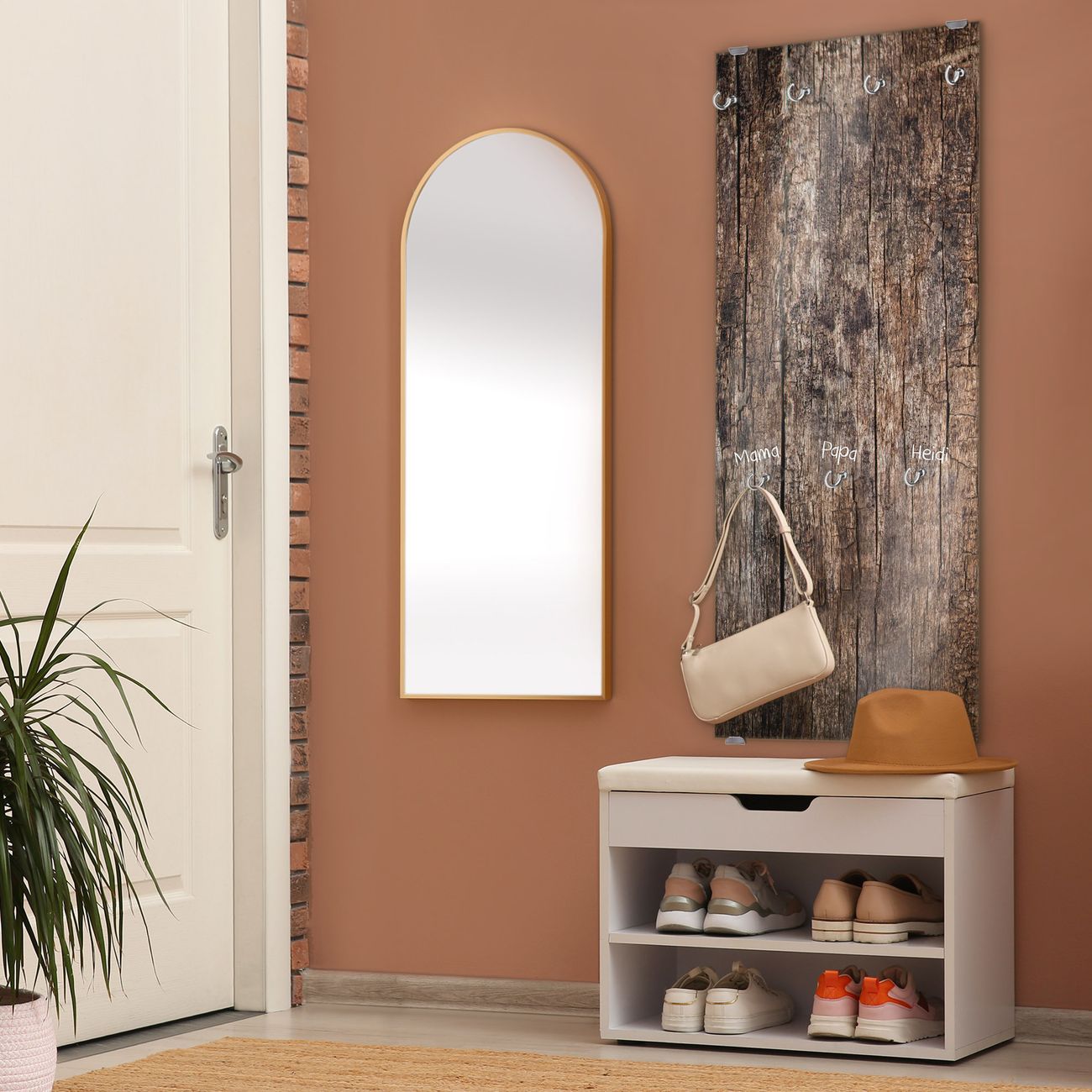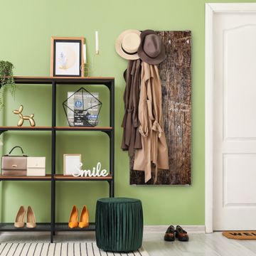 FUNKTION: Die banjado Wandgarderobe mit Motiv Altes Holz ist Ihr täglicher Begleiter. Zuverlässig hängen hier Ihre Jacken und Mäntel griffbereit. Das Echtglas ist Ihr Paneel auch beschreibbar und wieder abwischbar. DESIGN: Sie erhalten eine Garderobenleiste aus elegantem Echtglas mit dem Farbbrillanten Motiv Altes Holz hinterklebt. Das Design ist zeitlos klassisch, ohne dabei auf Funktionalität zu verzichten. Suchen Sie aus einer Vielzahl von Motiven das für Ihre Einrichtung Passende aus. DETAILS: Die Flurgarderobe besteht aus 4mm gehärtetem Sicherheitsglas. Sie ist 50cm breit, 125cm hoch und 6cm tief. Die Garderobenhaken zur Selbstmontage präsentieren sich in Edelstahl-Optik, ebenso die Abstandshalter für die Wandmontage. Ihre neue Garderobe ist sofort einsatzbereit. NUTZEN: Ihre neue Garderobe hält nicht nur zuverlässig Ihre Kleidung, sie ist auch optisch ein Blickfang. Durch das Glas können Sie an der Garderobe mit wasserlöslichen Kreidestiften oder Whiteboard-Markern auch Nachrichten hinterlassen. BANJADO: Wir sind ein kleines kreatives Team aus Sachsen und entwickeln Produkte die Design und Funktionalität verbinden sollen. Viel Freude mit Ihrer neuen Garderobe wünscht das banjado-Team!