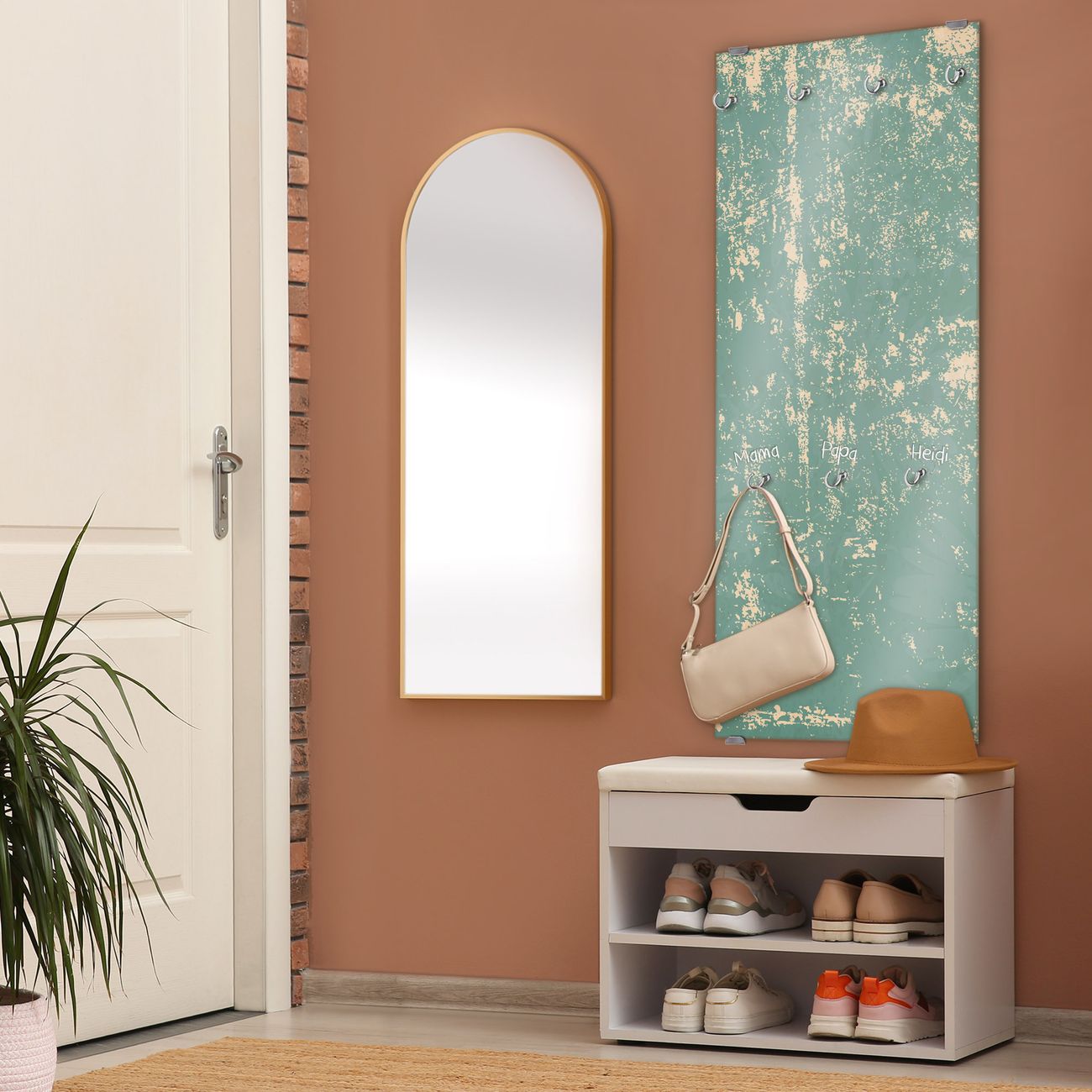 FUNKTION: Die banjado Wandgarderobe mit Motiv Altes Papier ist Ihr täglicher Begleiter. Zuverlässig hängen hier Ihre Jacken und Mäntel griffbereit. Das Echtglas ist Ihr Paneel auch beschreibbar und wieder abwischbar. DESIGN: Sie erhalten eine Garderobenleiste aus elegantem Echtglas mit dem Farbbrillanten Motiv Altes Papier hinterklebt. Das Design ist zeitlos klassisch, ohne dabei auf Funktionalität zu verzichten. Suchen Sie aus einer Vielzahl von Motiven das für Ihre Einrichtung Passende aus. DETAILS: Die Flurgarderobe besteht aus 4mm gehärtetem Sicherheitsglas. Sie ist 50cm breit, 125cm hoch und 6cm tief. Die Garderobenhaken zur Selbstmontage präsentieren sich in Edelstahl-Optik, ebenso die Abstandshalter für die Wandmontage. Ihre neue Garderobe ist sofort einsatzbereit. NUTZEN: Ihre neue Garderobe hält nicht nur zuverlässig Ihre Kleidung, sie ist auch optisch ein Blickfang. Durch das Glas können Sie an der Garderobe mit wasserlöslichen Kreidestiften oder Whiteboard-Markern auch Nachrichten hinterlassen. BANJADO: Wir sind ein kleines kreatives Team aus Sachsen und entwickeln Produkte die Design und Funktionalität verbinden sollen. Viel Freude mit Ihrer neuen Garderobe wünscht das banjado-Team!